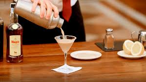 - Debemos mezclar bien los ingredientes con hielo. Luego servimos en un vaso de cocktel y adorne con una guinda o cereza maraschino.