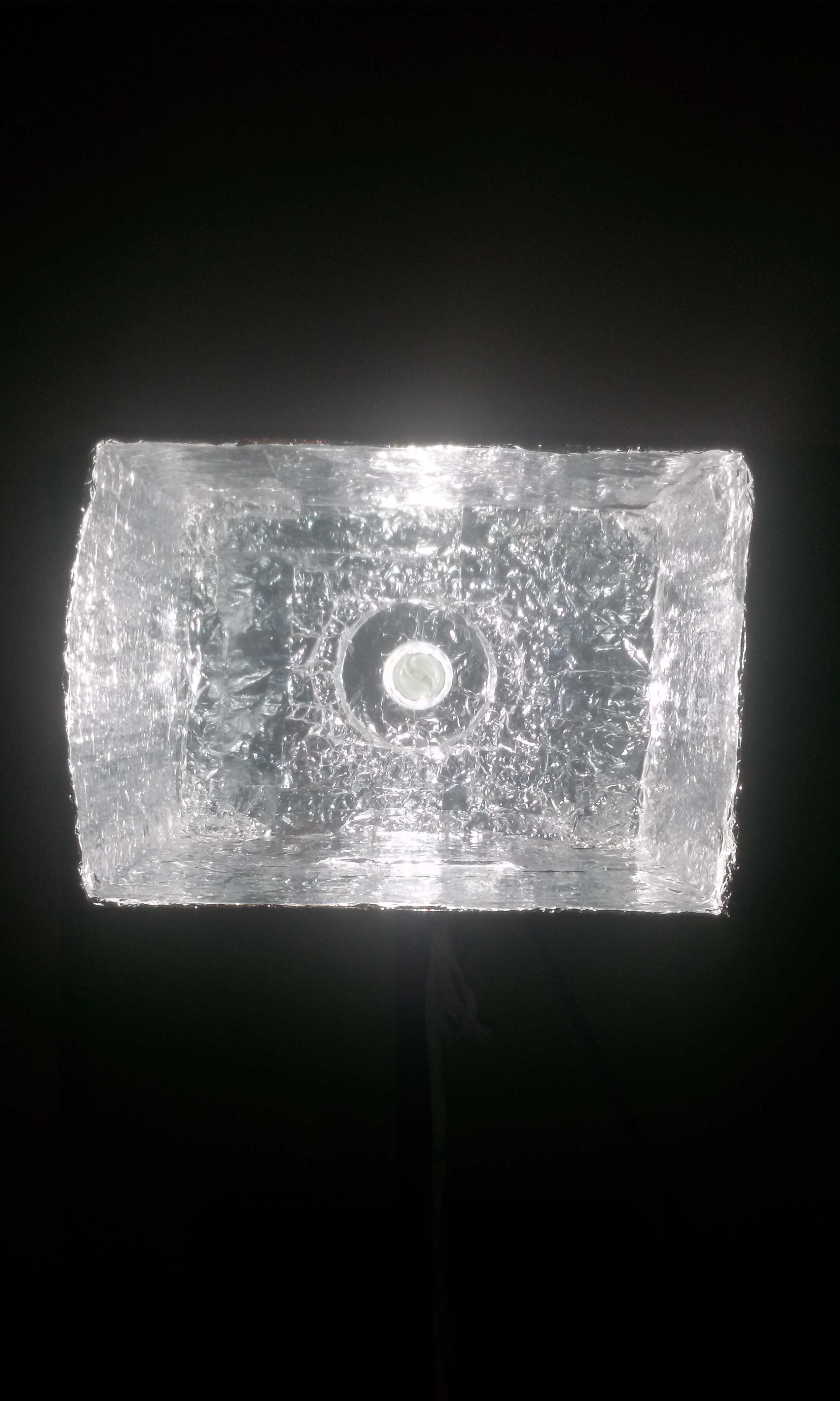 Y por último cubrimos la parte de adelante de la caja con papel bond o cebolla blanco, esto para tener una mejor distribución de luz.