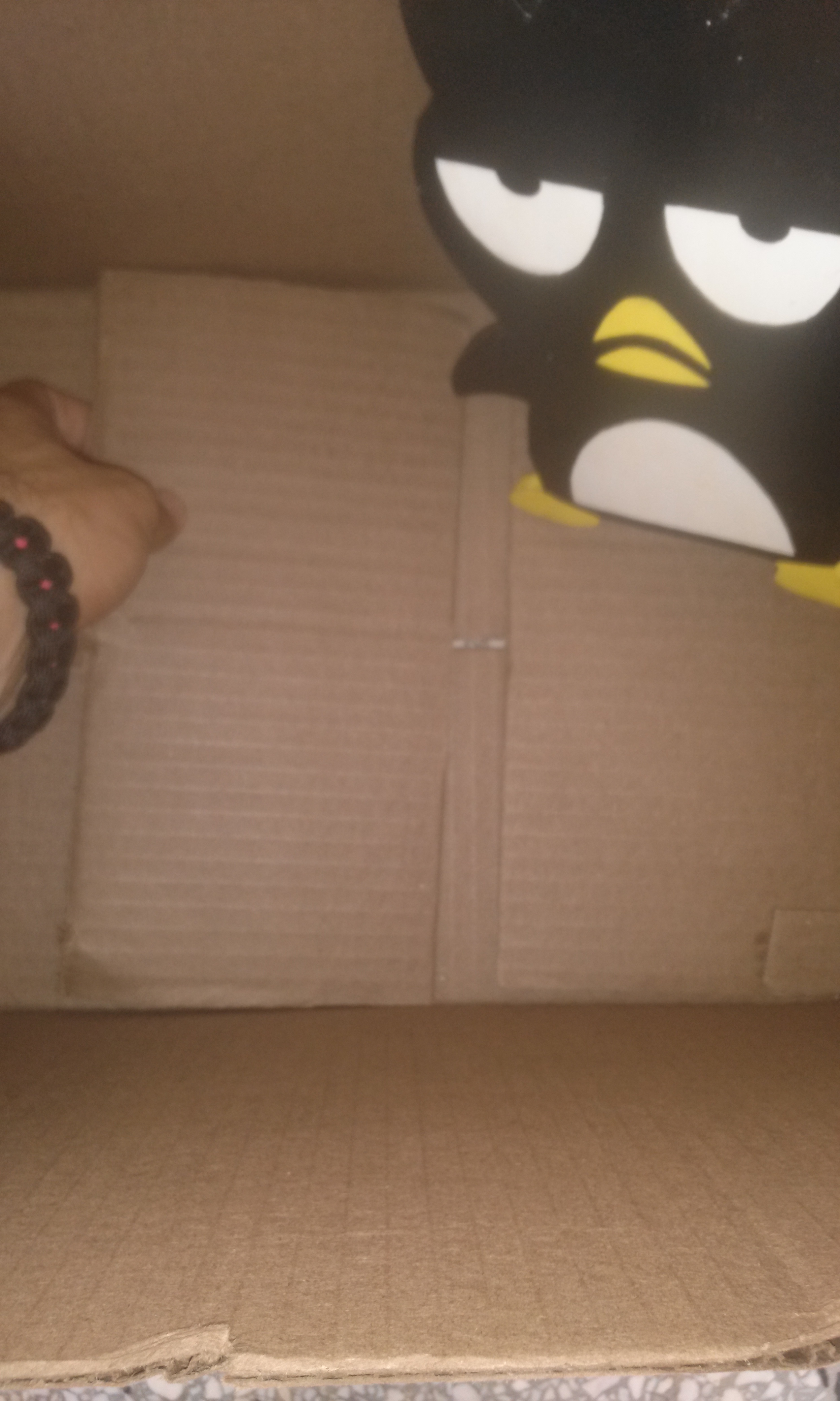 Sellas la otra parte con los cartones sobrantes para dar mayor firmeza y soporte a la base. (badtz maru quería saludar)