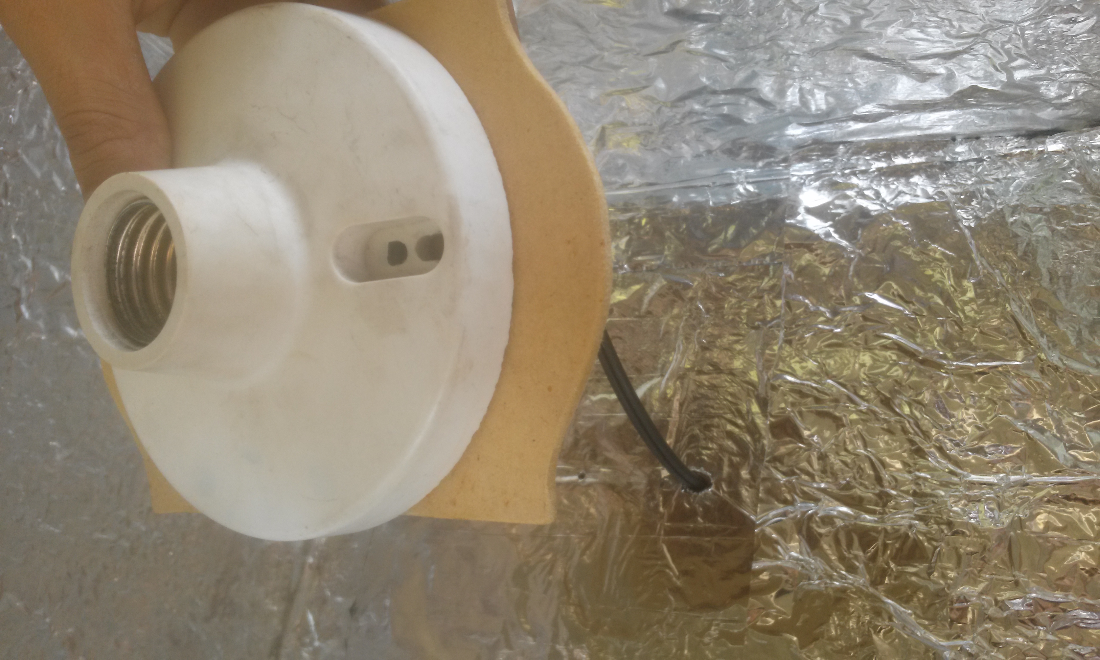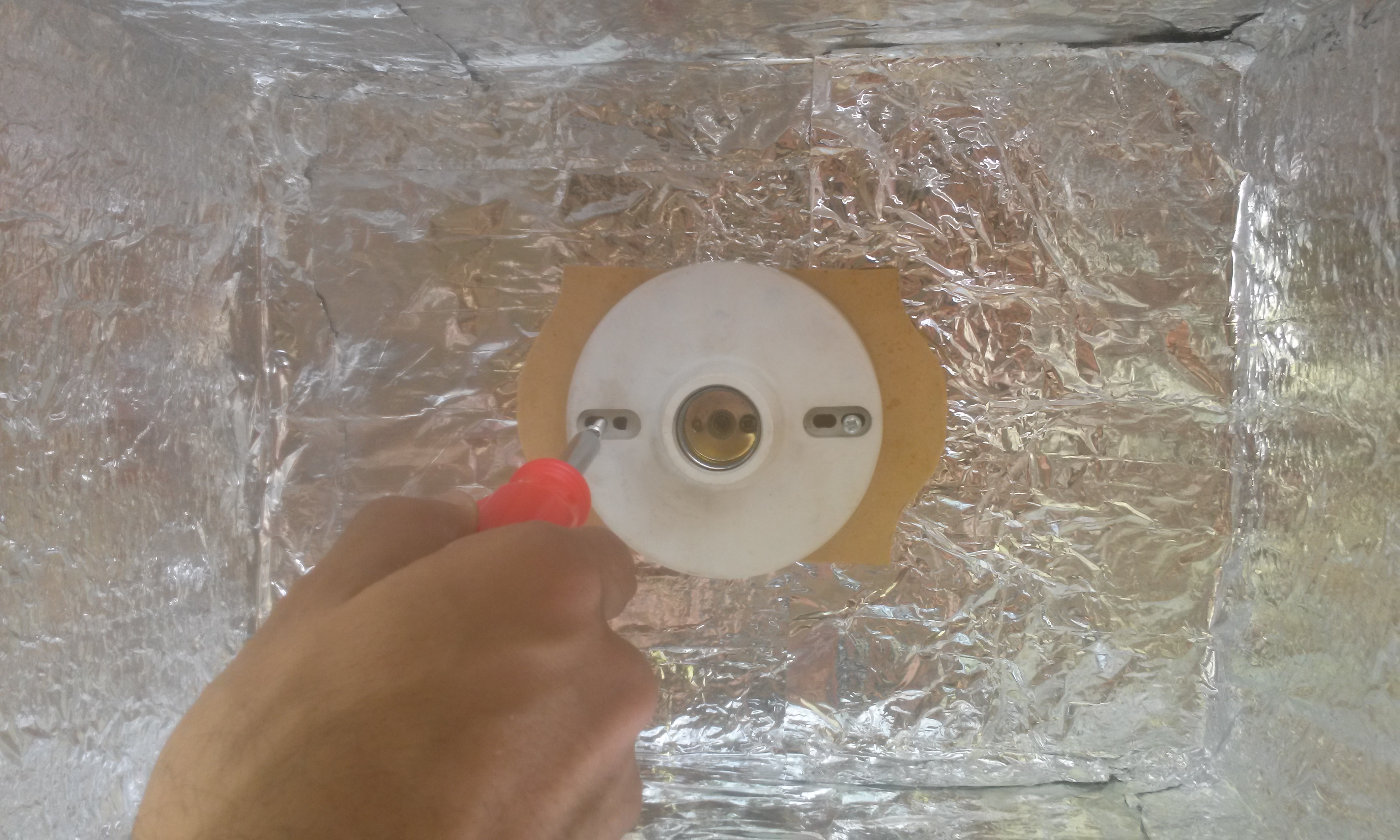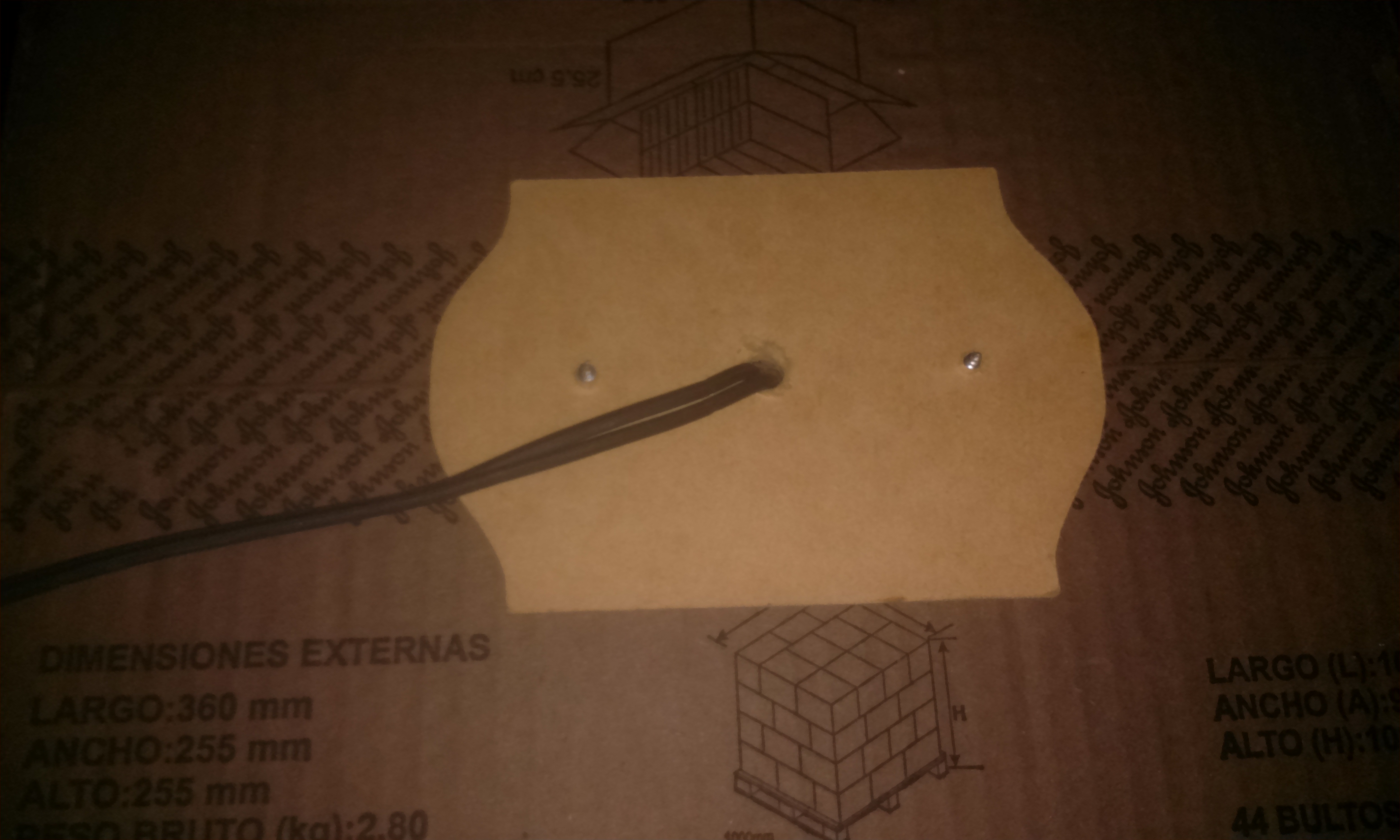 5). Se fija el sócate a la caja con ayuda de los tornillos y los dos soportes de MDF
