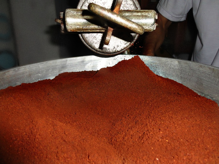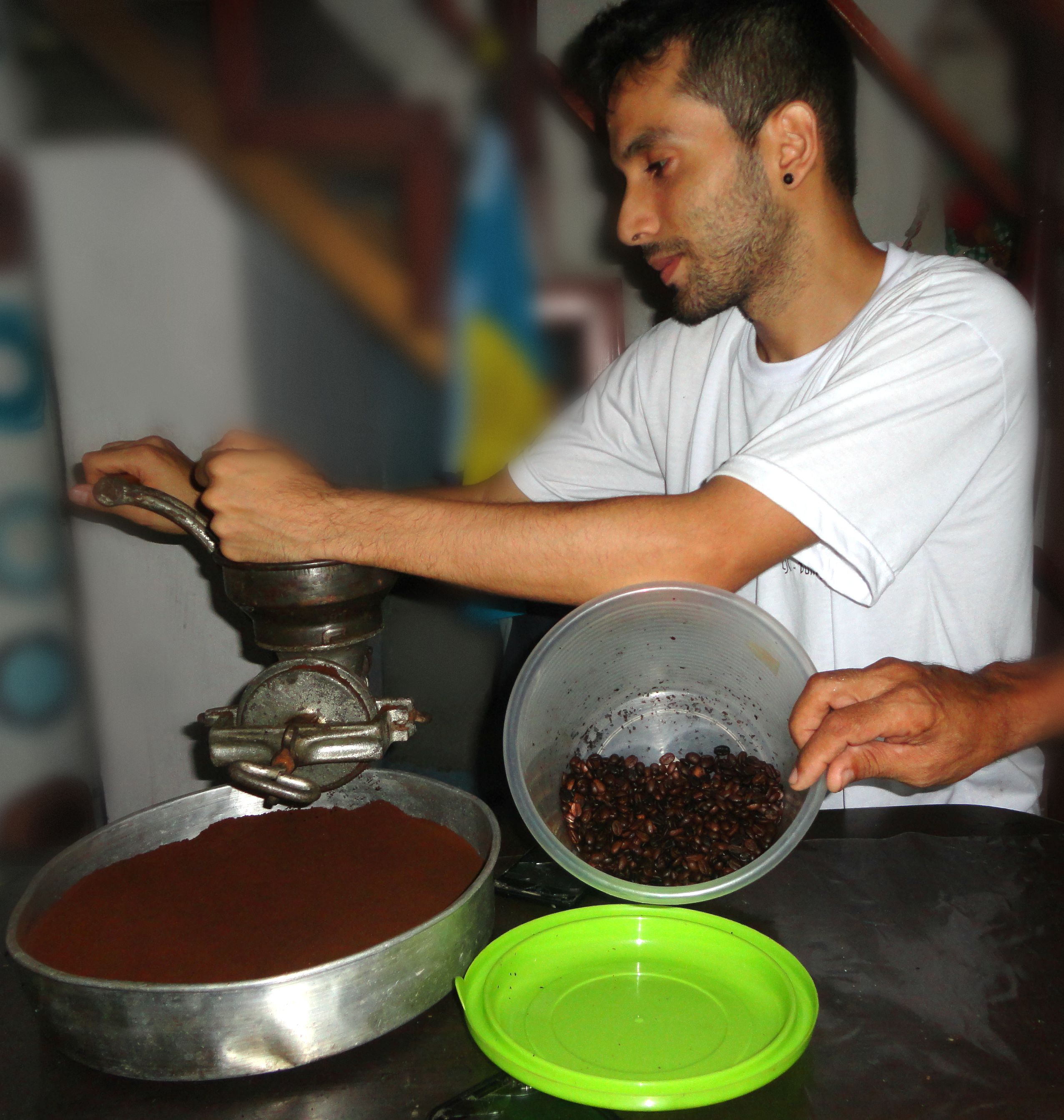Instale mi molino manual y empece a moler el café, el olor es tan fuerte que la ropa queda impregnada del delicioso olor. (Miren como el café va cayendo al recipiente)..