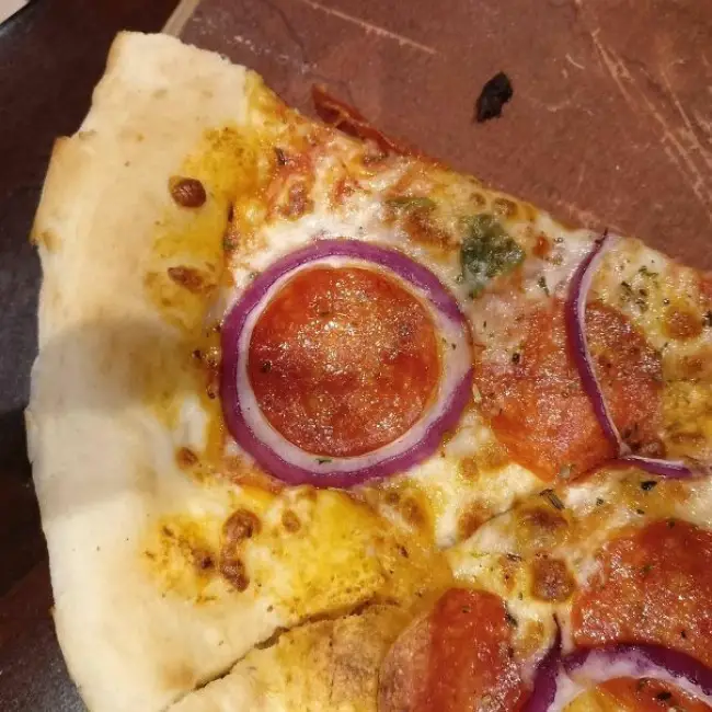 - Este pepperoni luce perfecto dentro del aro de cebolla.