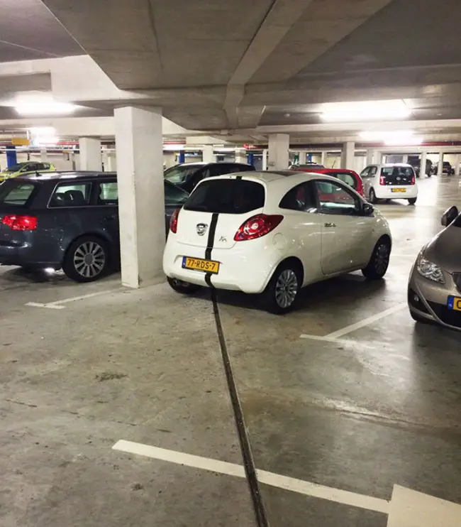 - La línea en el piso del estacionamiento coincide perfectamente con la línea del automóvil.