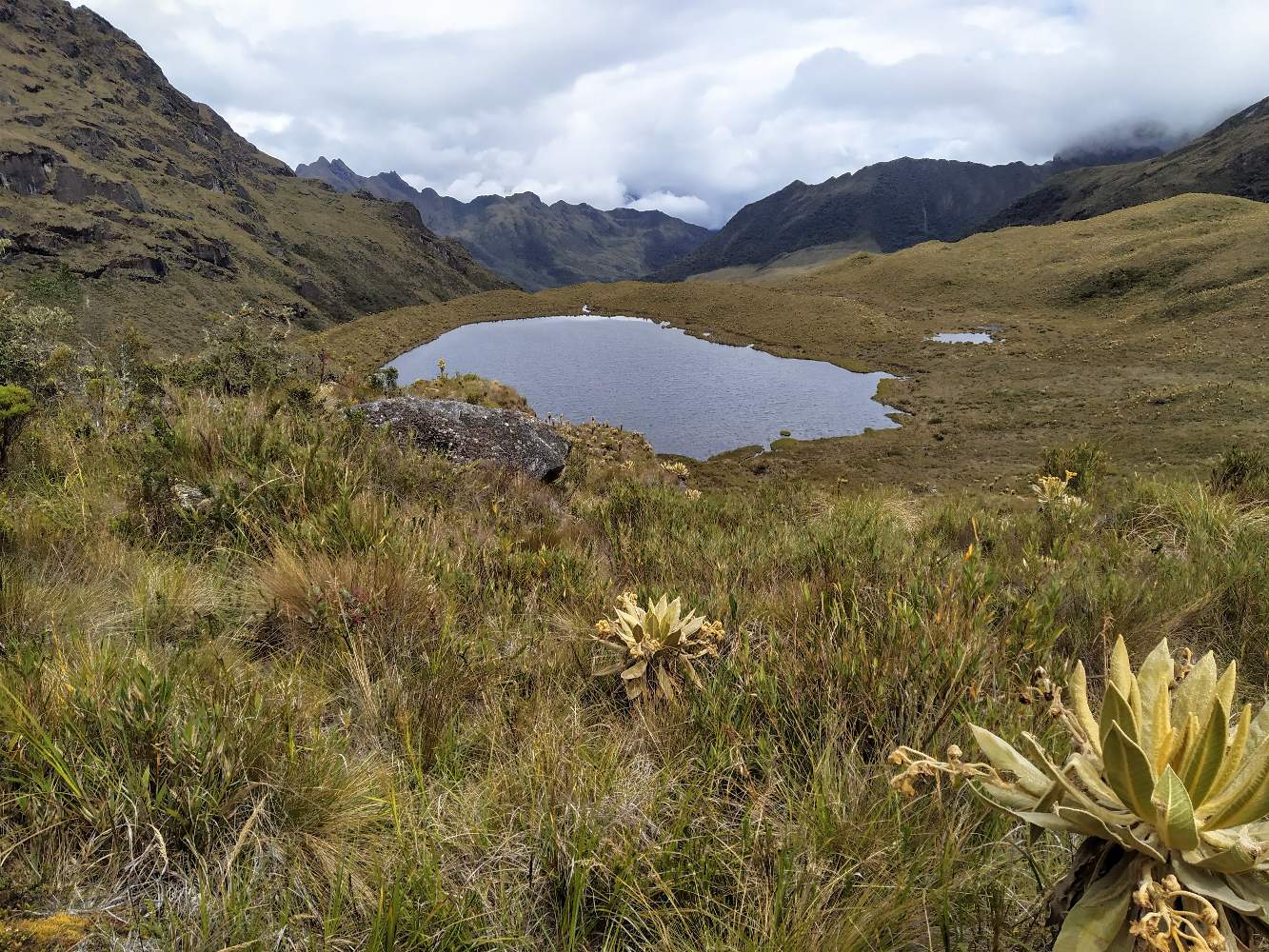 De ahí en adelante, el camino fue en descenso; después de haber completado 6 horas de marcha, llegamos a la Laguna del Tigre y allí almorzamos y descansamos un poco.