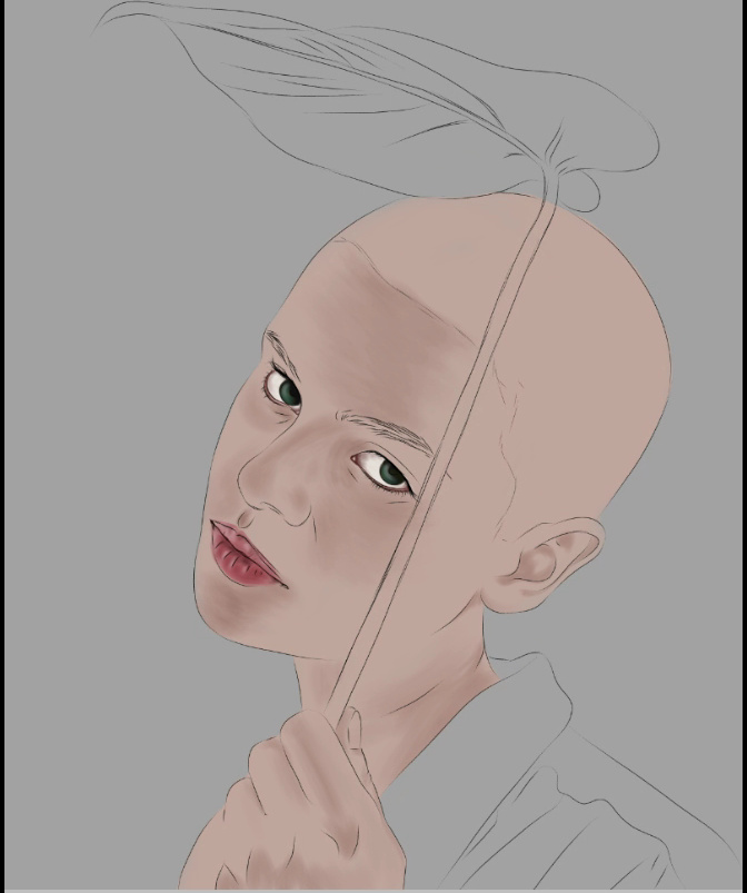 I continued to add a base color and shades to her skin, I usually use pale shades so that in the end I can saturate a little: