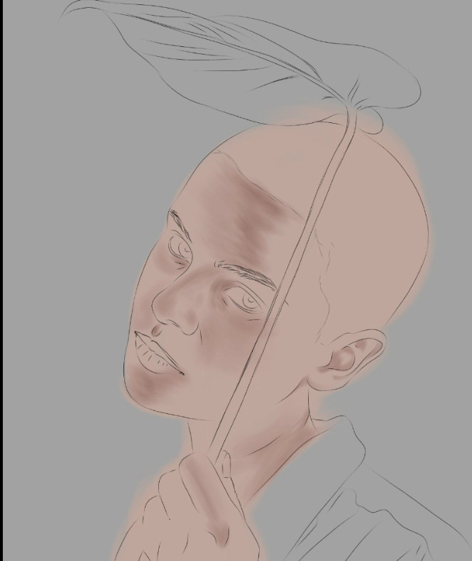 Continué agregando un color base y sombras a su piel, normalmente uso tonos pálidos para al final poder saturar un poco: