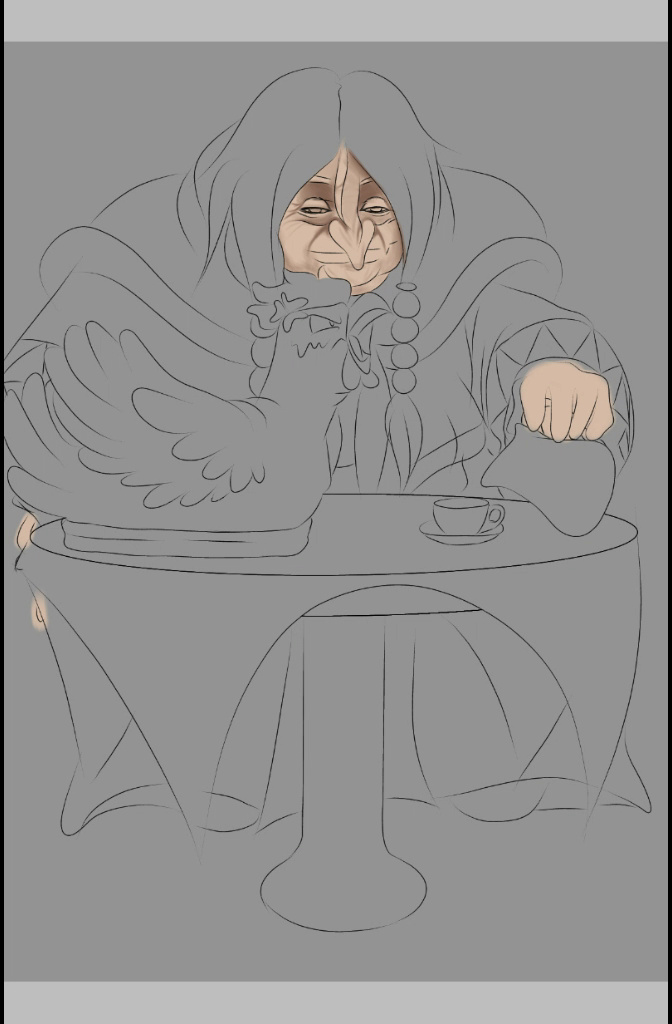 All the fabric in the scene was created with the rough brush, generating movements by creating some darker shades compared to the base color tone. The table, jug and cup wanted them to be silver, in the end I decided to create a color more yesteryear:
