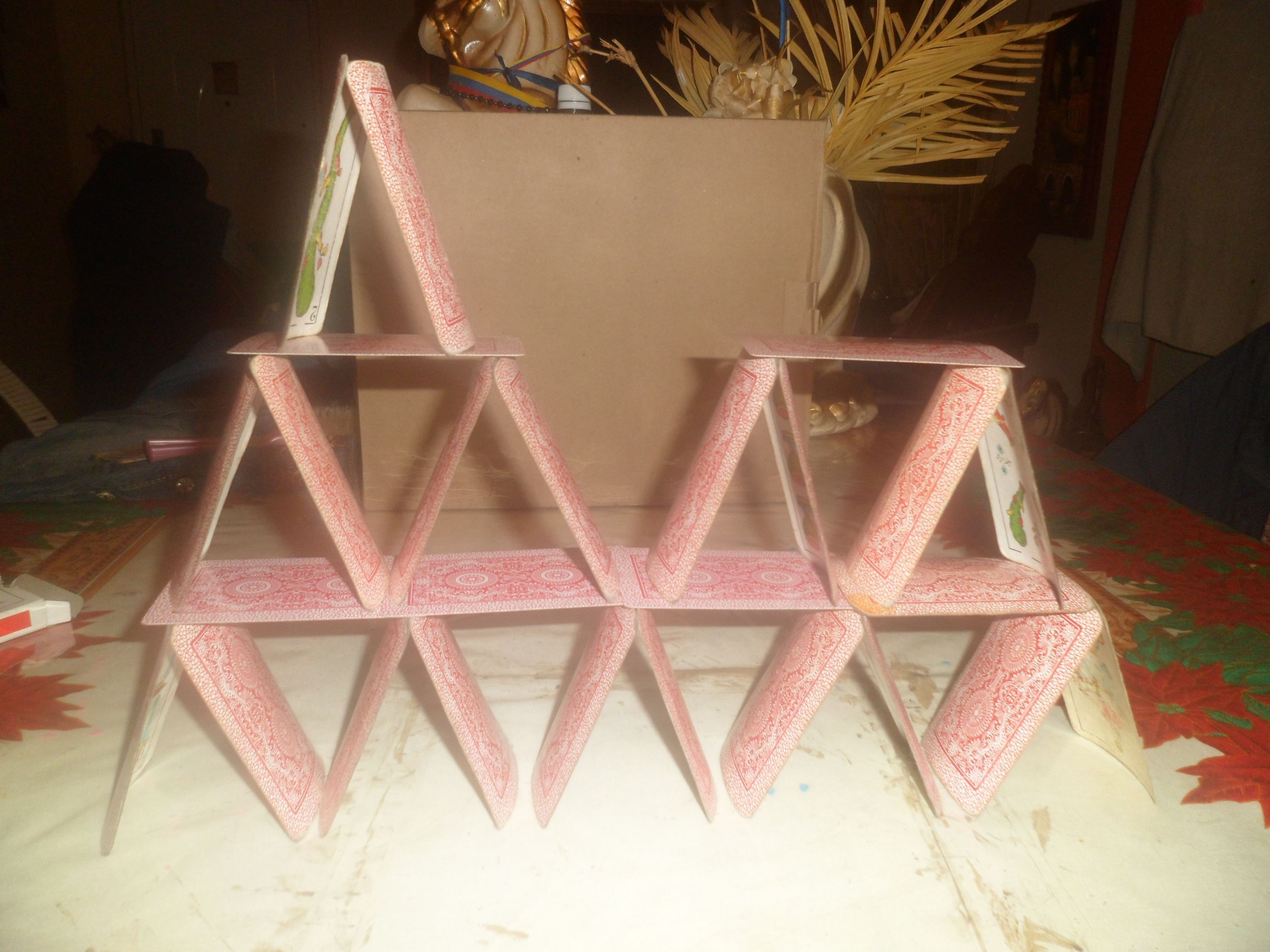 Hola amigos de steemit, hoy les traigo el castillo de cartas/torre de naipes o casa de naipes, como quieran llamarlos. Este post me saco las canas verdes, ya que estoy intentando hacer la casa de naipes con cartas nuevas, lo cual es casi imposible ya que como son nuevas se resbalan, así que decidí unir unas cartas ya viejas y muy usadas con las nuevas para ver hasta donde llego, espero les guste