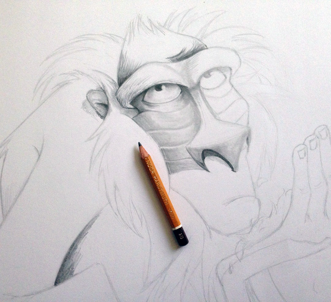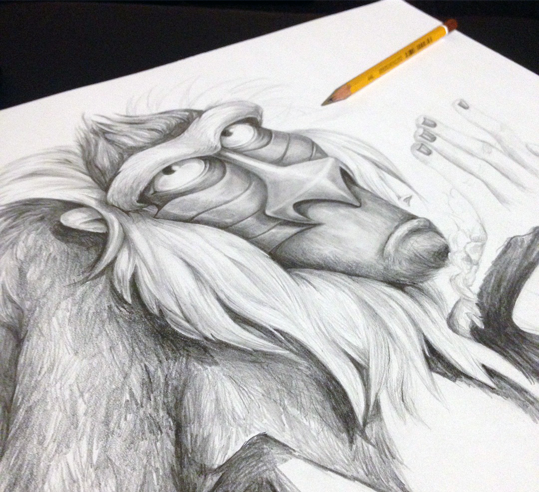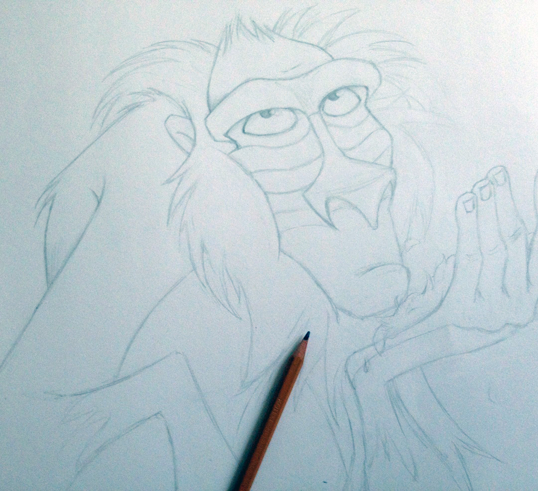 Hola queridos amigos de la comunidad, hoy quiero retomar con ustedes mi faceta en artes con este dibujo del personaje Rafiki de la película El Rey León.