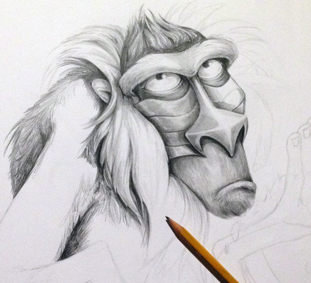 Mi versión de Rafiki en lápiz de grafito