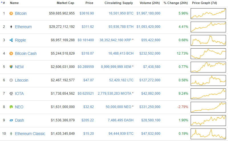 Nos centraremos en la capitalización de mercado, porque el precio de la moneda criptográfica en sí no significa nada. Bitcoin no es "más caro" que el aire, sólo porque BTC está operando a un precio más alto que ETH.