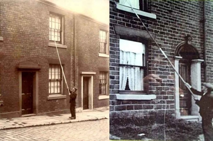 Se les llamaba “knocker up”, y su empleo no era otro que despertar de madrugada a los trabajadores para que llegasen a tiempo a las fábricas, canteras y minas de carbón durante la época de la Revolución Industrial en Inglaterra e Irlanda.
