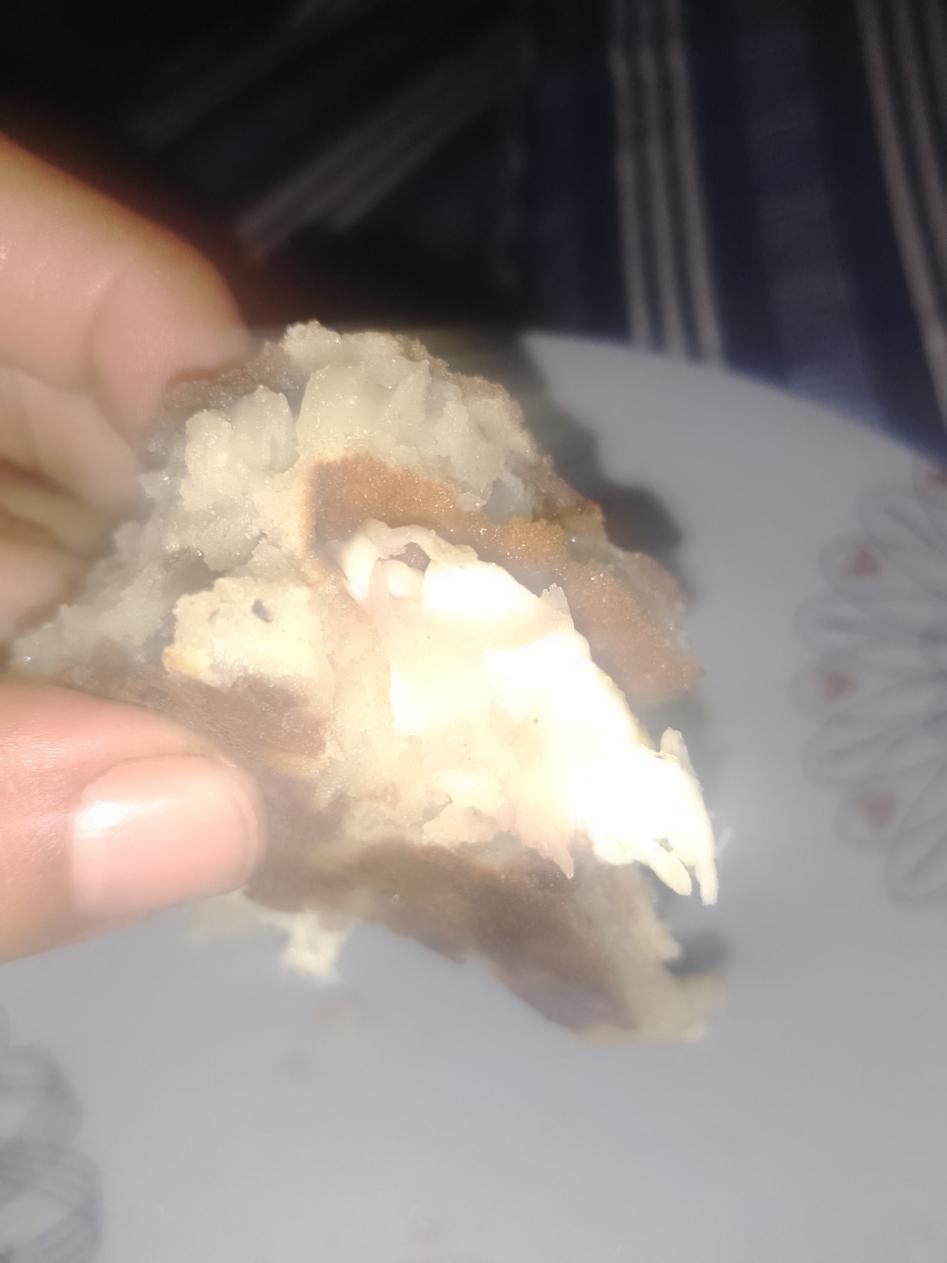 Mientras estaba acostada en la hamaca de reposo me comía mi rica panqueca con mucho gusto.