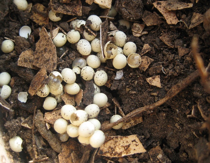 Tratando de organizar un poco en el patio, quería abonar algunas de mis plantas que están bastante descuidadas, hay mucha sequía y poco tiempo para dedicarme a su cuidado, encontré uno de los materos tirado en pleno sol, quise sacarle la tierra para usarla en otra plata, y mi sorpresa es que consigo una cantidad de huevos enterrados.