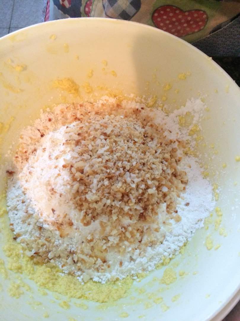 Agregar los secos tamizados y el coco. Envolver en papel film y llevar por lo menos dos horas a la heladera