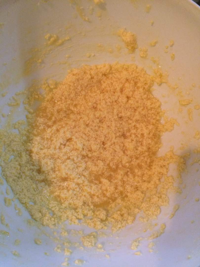 Batir la manteca pomada con el azúcar hasta obtener una crema, incorporar el huevo, mezclar, luego esencia de vainilla, la ralladura de naranja y el jugo de naranja.