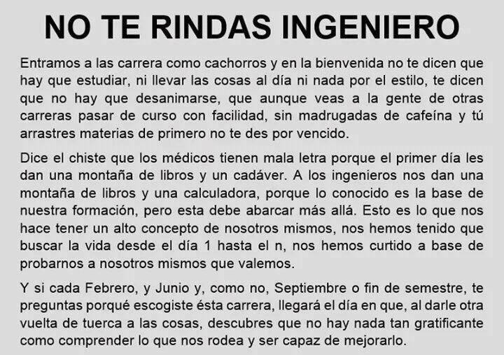Y bueno para finalizar quise dejar este mensaje para todos aquellos que quieran estudiar ingeniería y para los que la estudian también, que no se rindan hasta lograr que sean ingenieros. A cerca de mis posts en STEEMIT aprovecharé esta Semana Santa para ponerme al día con mi contenido, y a mis seguidores les pido disculpas por todo este tiempo sin mí.