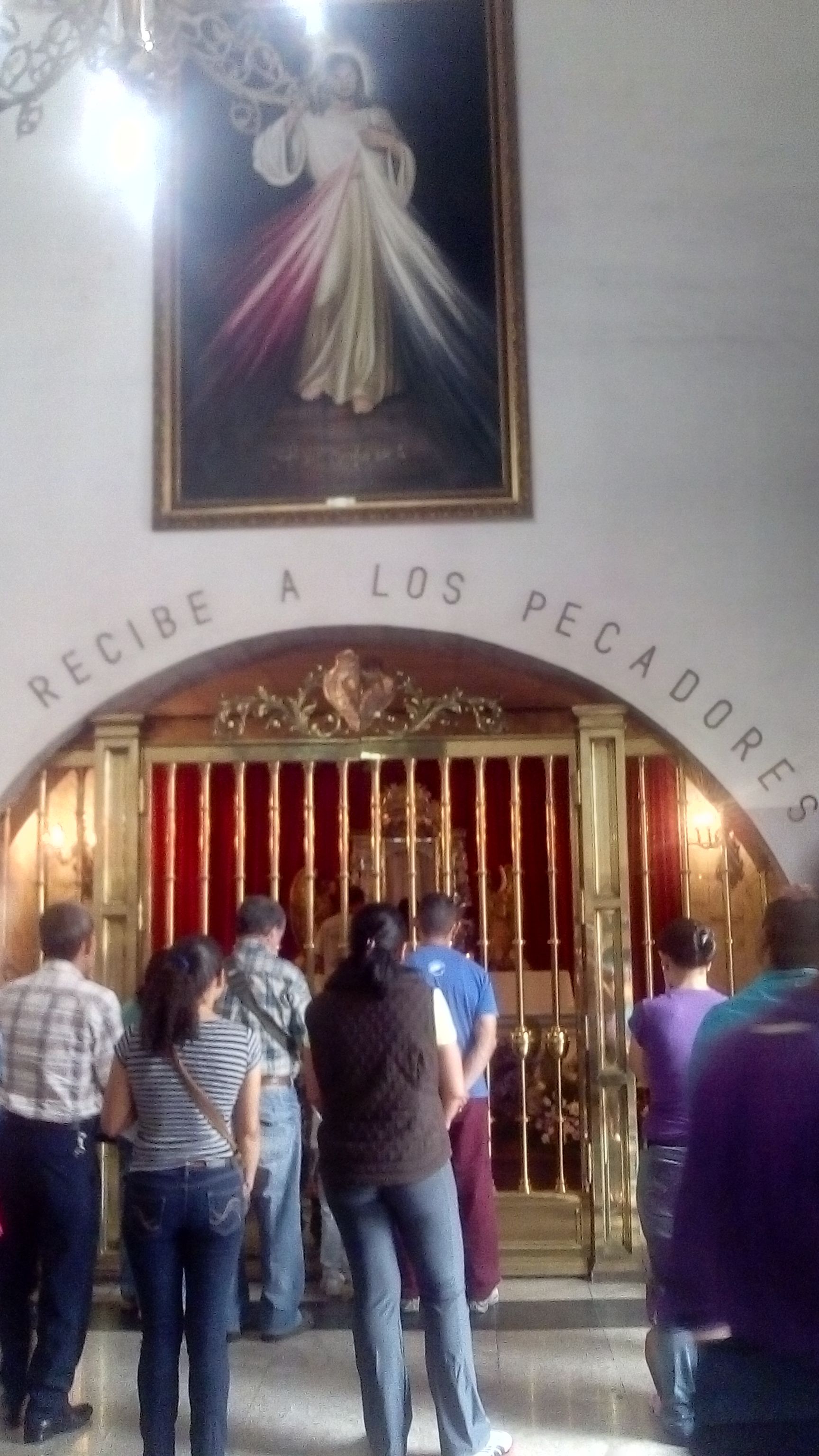 Nos encontramos en la estación del metro ( subterráneo ) a lo cual llega 30 minutos tardes, saliendo de maternidad comenzamos la marcha y llegamos pronto a la primera iglesia a la cual vimos bastante sola , hicimos el ritual específico de persinarse , dar un pequeño diezmo tome unas fotos y seguimos. Mi novia estaba usando un trozo de sábila para liberar energía y es por esto que digo que el sincretismo es curioso en una fiesta católica como esta.