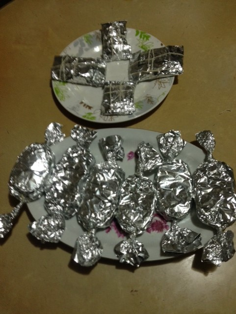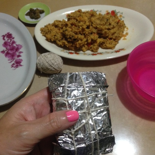 Hay dos formas de cerrar el papel de aluminio, una con pabilo (sin apretar, ya que se rompe el papel).