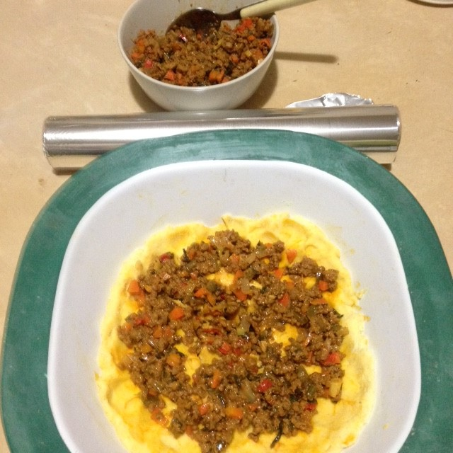 Ya lista nuestra masa suavecita y con toda la carne molida, lista para ser convertida en hermosos bollitos:)