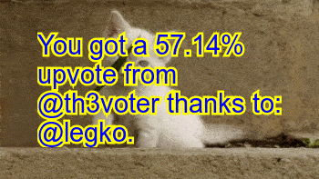 You got a 57.14% upvote from @th3voter thanks to: @legko!