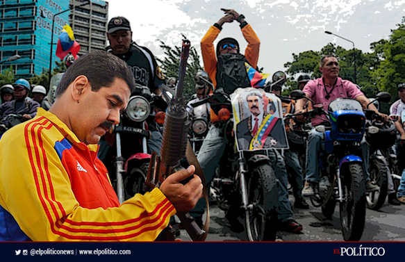 Para nadie es un secreto que el régimen del usurpador Maduro ya no cuenta con la fuerza armada bolivariana de Venezuela la cadena de mando está rota y la gran mayoría de los venezolanos y la comunidad internacional no reconoce el gobierno del usurpador de Nicolás Maduro si no el gobierno del presidente interino Juan Guaidó lo que ha causado una reacción de incomodidad al gobierno usurpador de Maduro y Diosdado se han quedado solos y ha armado a estos colectivos para que salga en sus motos y arremetan contra los venezolanos sembrándole miedo pero ya la gran mayoría de los venezolanos han perdió el medio y salen cada día a protestar molesto en forma pacífica por la falta de luz, falta de agua, falta de comida y la falta de medicamento.
