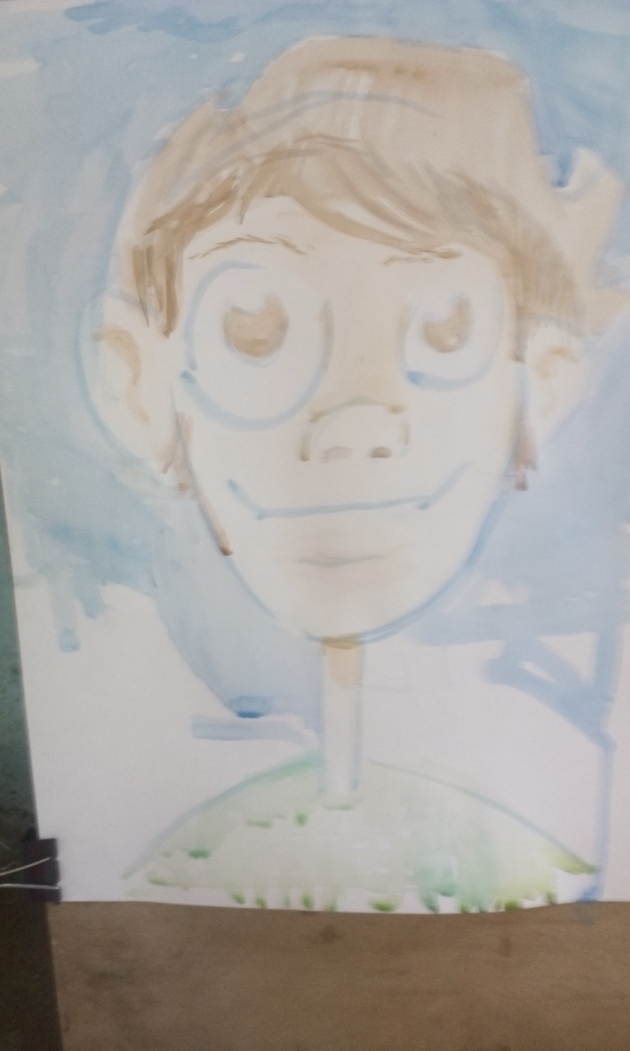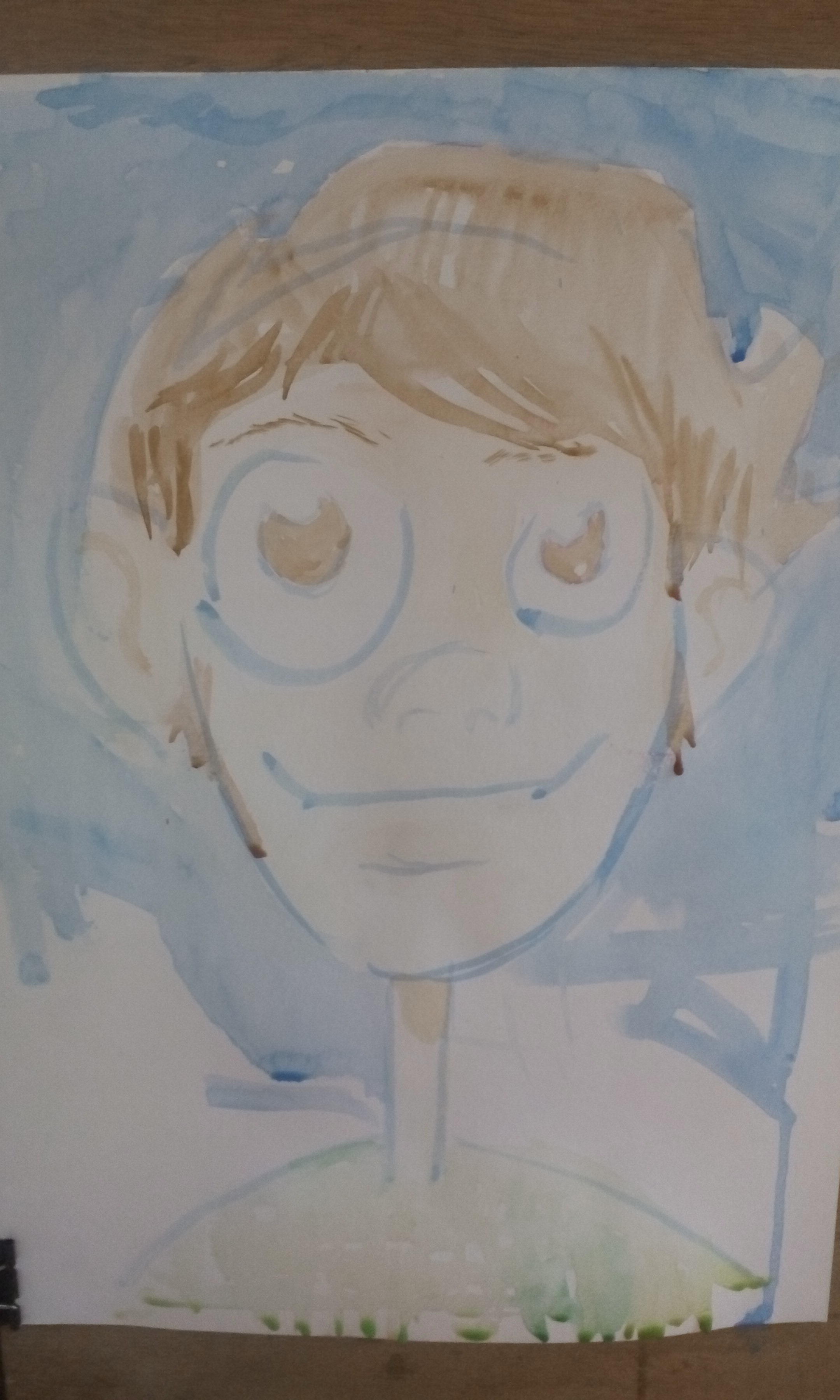 Continuando, en el proceso se pude ver cómo voy de lo claro a los oscuro, siendo esta la idea esencial de tod acuarela, simultáneamente mantengo los blanco del papel para la luz y los ojos, ya que el blanco en la acuarela, es el blanco del papel por esa razón se comienza con tonos claros.