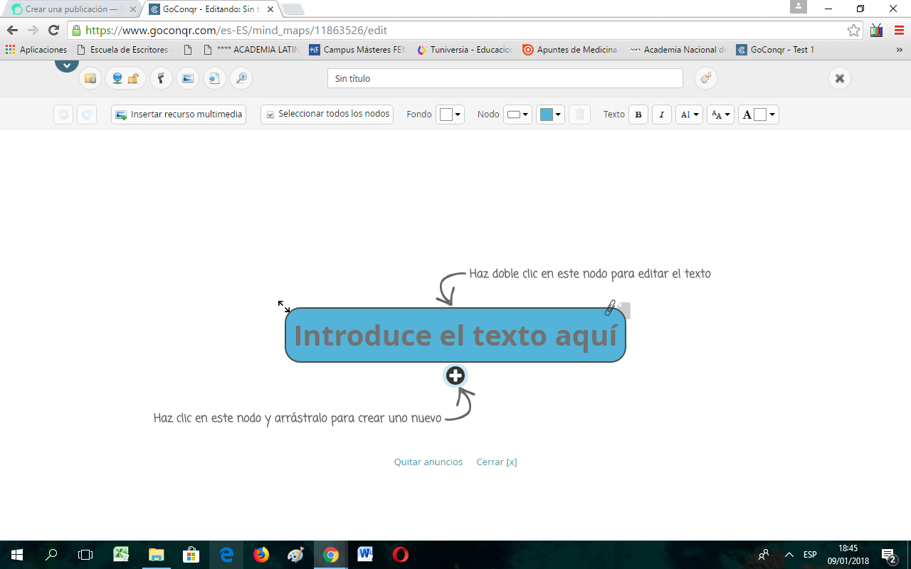Abrimos la aplicación vamos a Crea (en la parte superior izquierda) colocamos mapas mentales y empezamos: