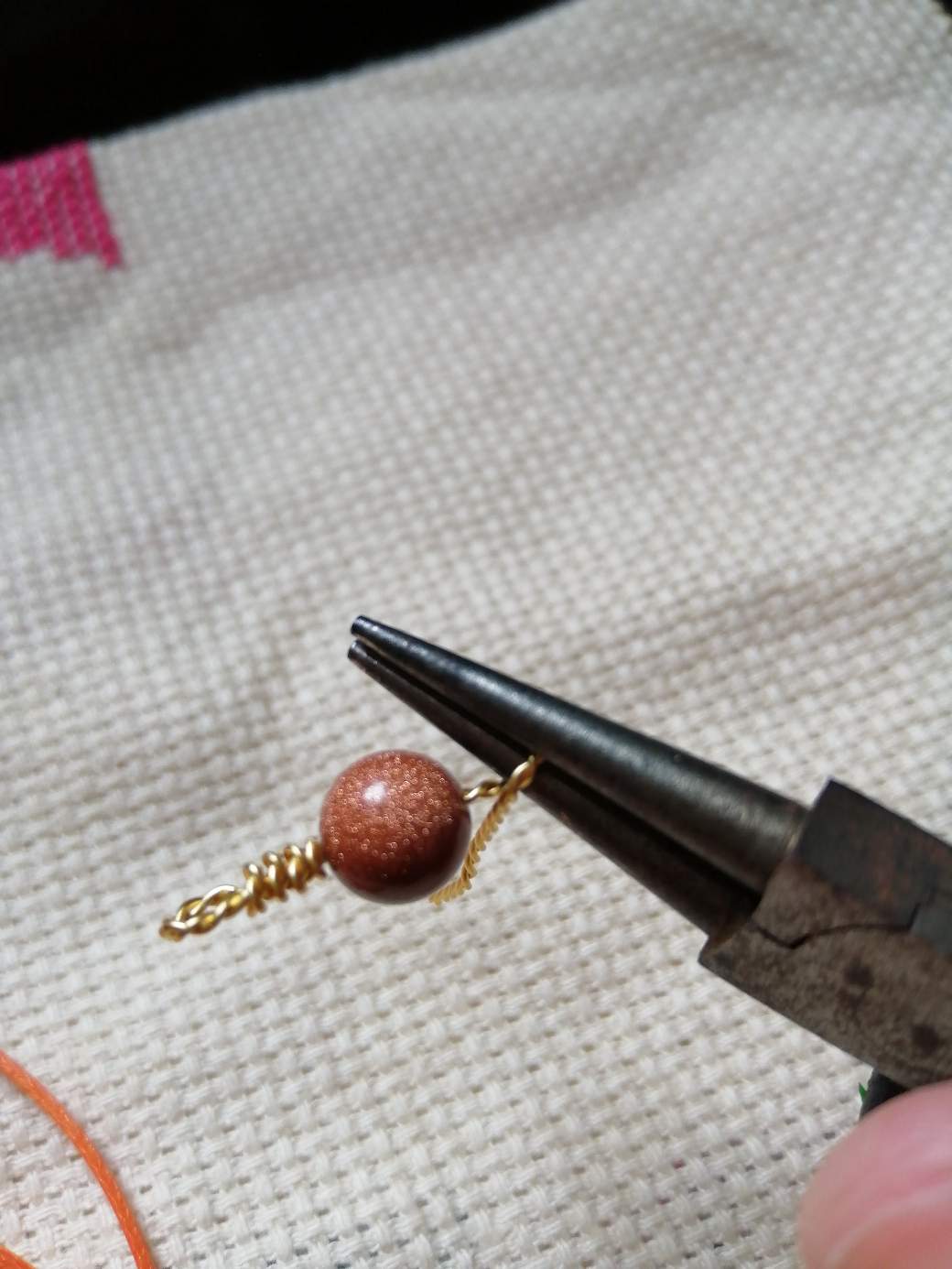 Introducimos una piedra en el hilo de bisutería.