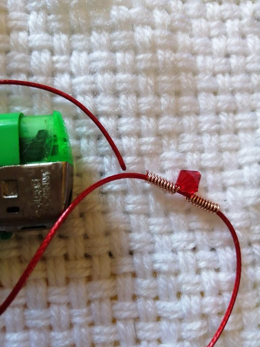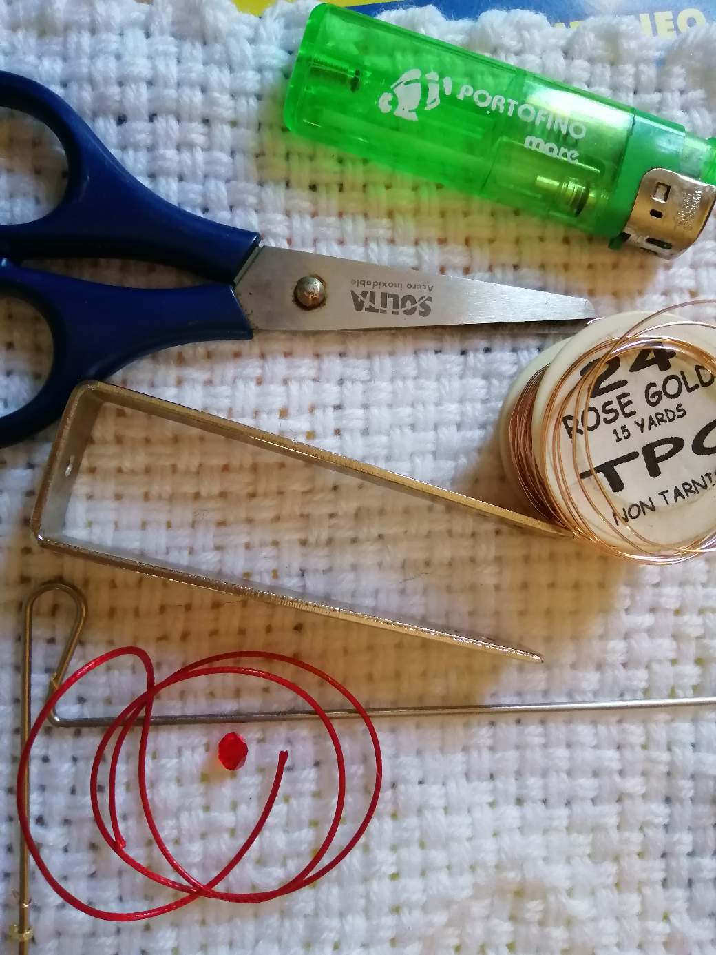 Un paso más.. Colocamos el hilo de piel de serpiente y le hacemos los amarres de seguridad.