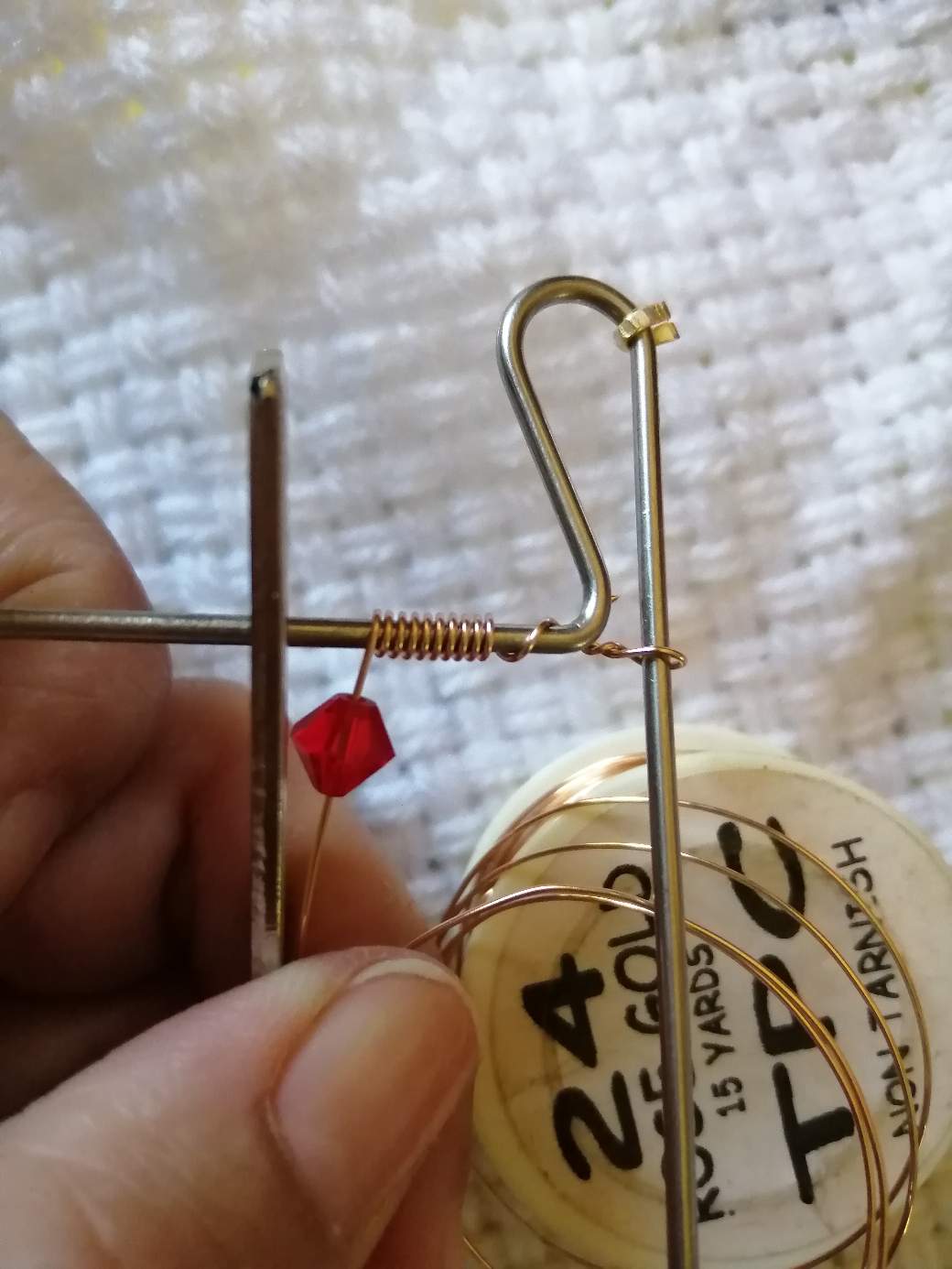A este nivel, ya la pieza principal está casi terminada, un hermoso cristal de Swarovsky incrustado en un alambre dorado de alta calidad.