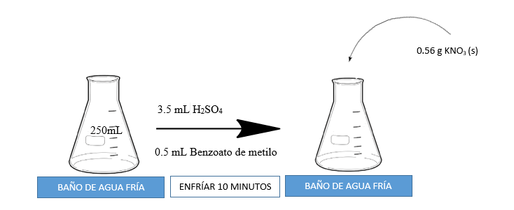A continuación, se presenta un esquema gráfico de la nitración del benzoato de metilo