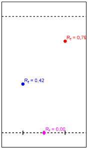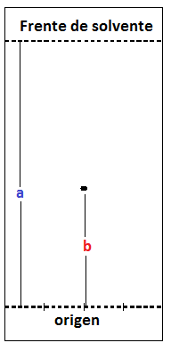 El desplazamiento alcanzado por cada componente de la mezcla y por el patrón sembrados se puede medir a través de la relación de frente “Rf”, este se define matemáticamente por: