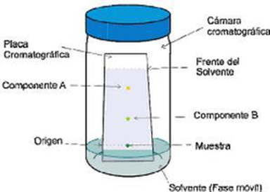 Figura 3. Esquema de la cromatografía de capa delgada. Figura obtenida de [3].