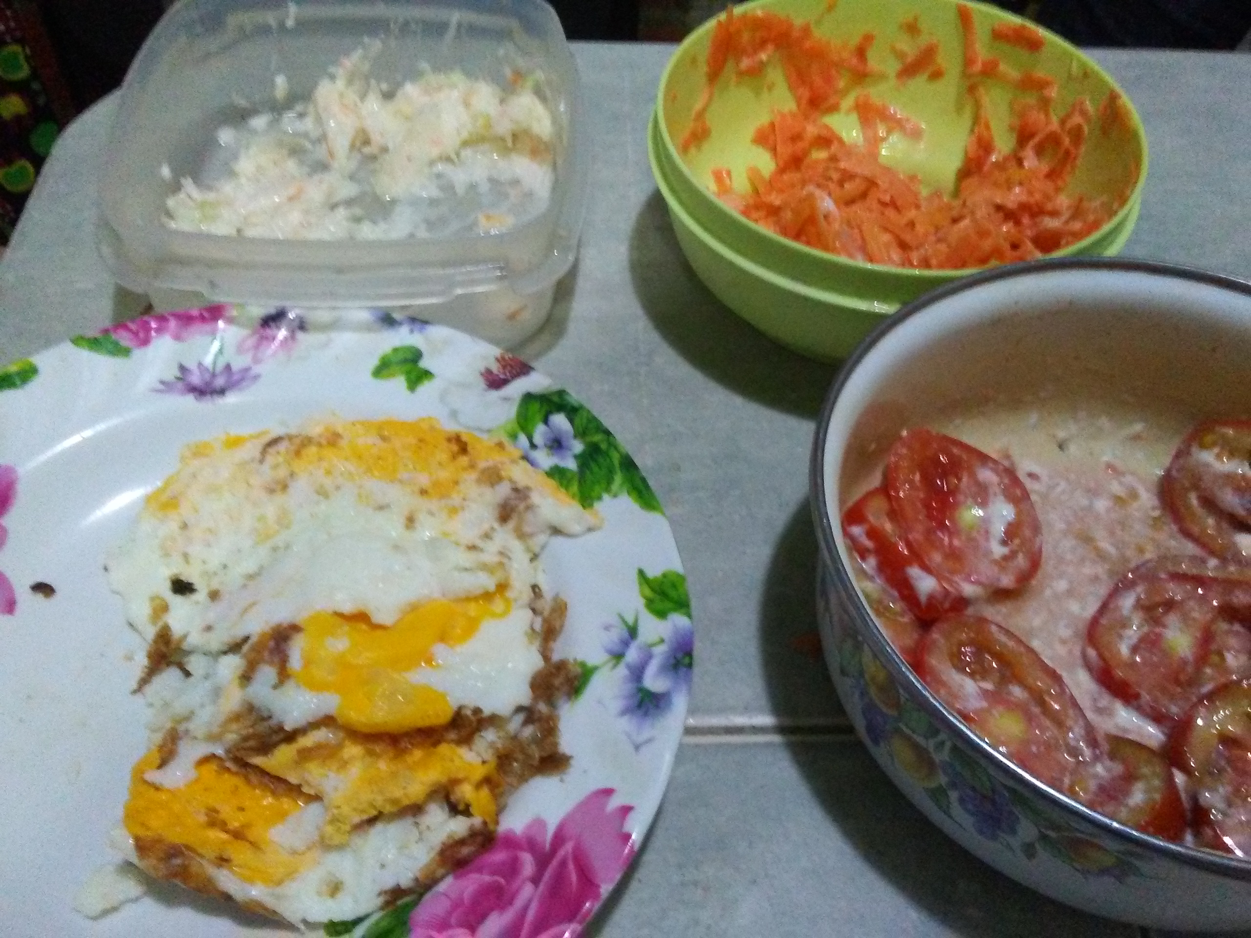 - picar en rodajas la cebolla y el tomate, la zanahoria me gusta mas rallada.