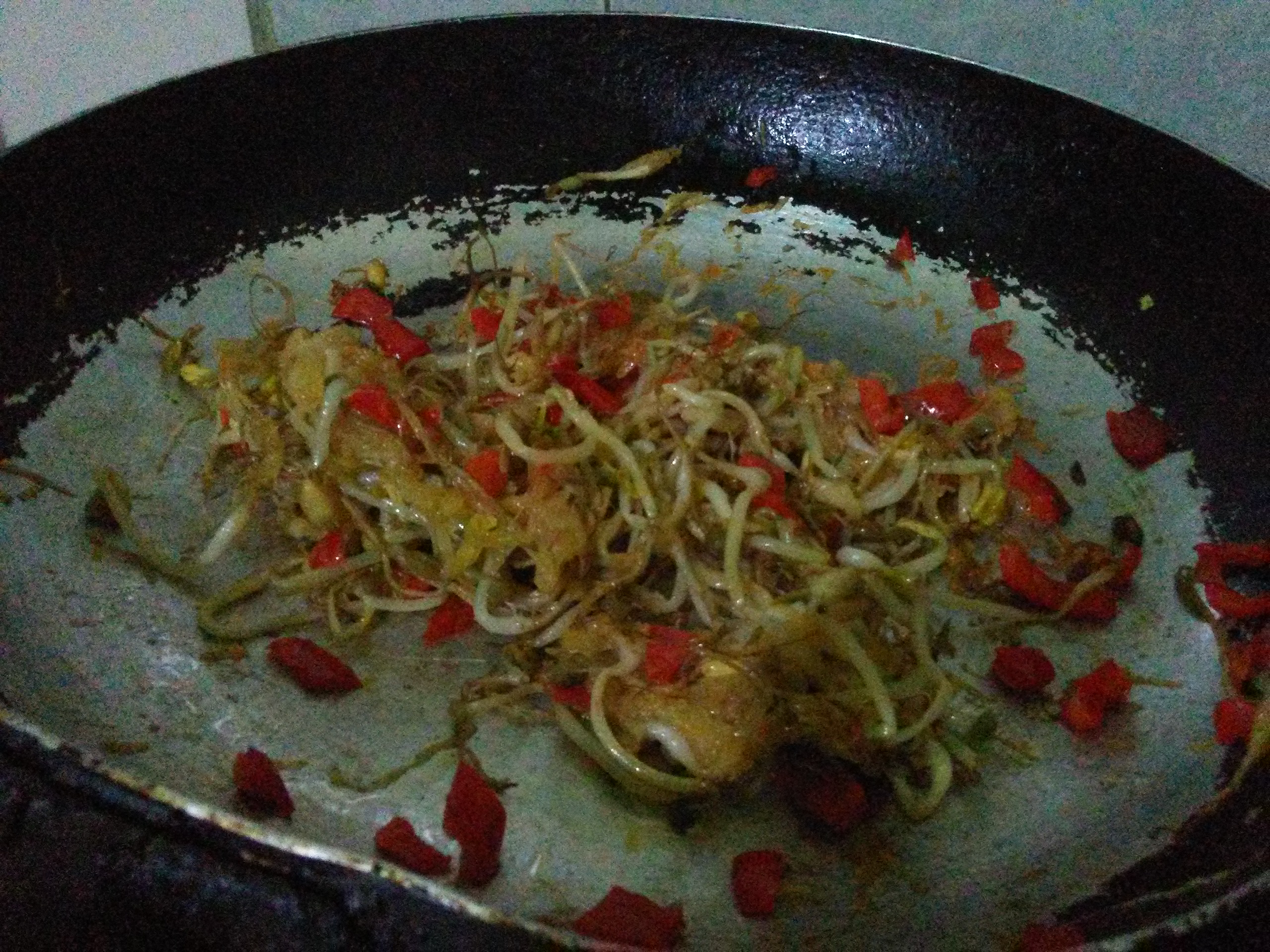 - Yo aparte como opcional, cocine raíces china, luego pique en cuadritos el pimentón y sofreí con un poco de aceite, las raíces chinas y el pimentón.