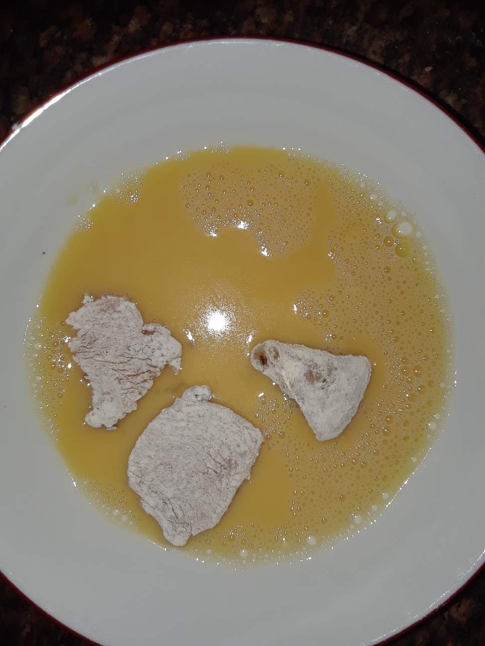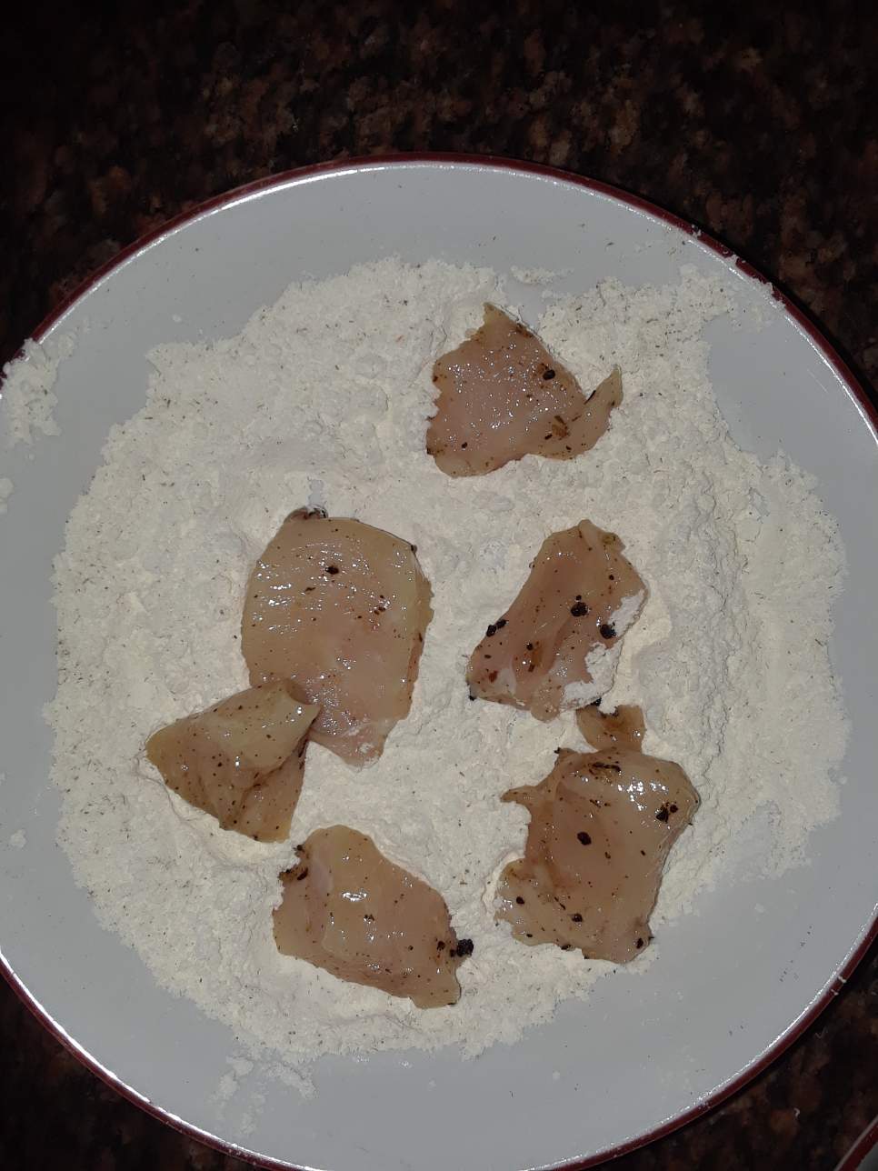 - Deben ir pasando los trozos de pechuga primero por la harina de trigo.
