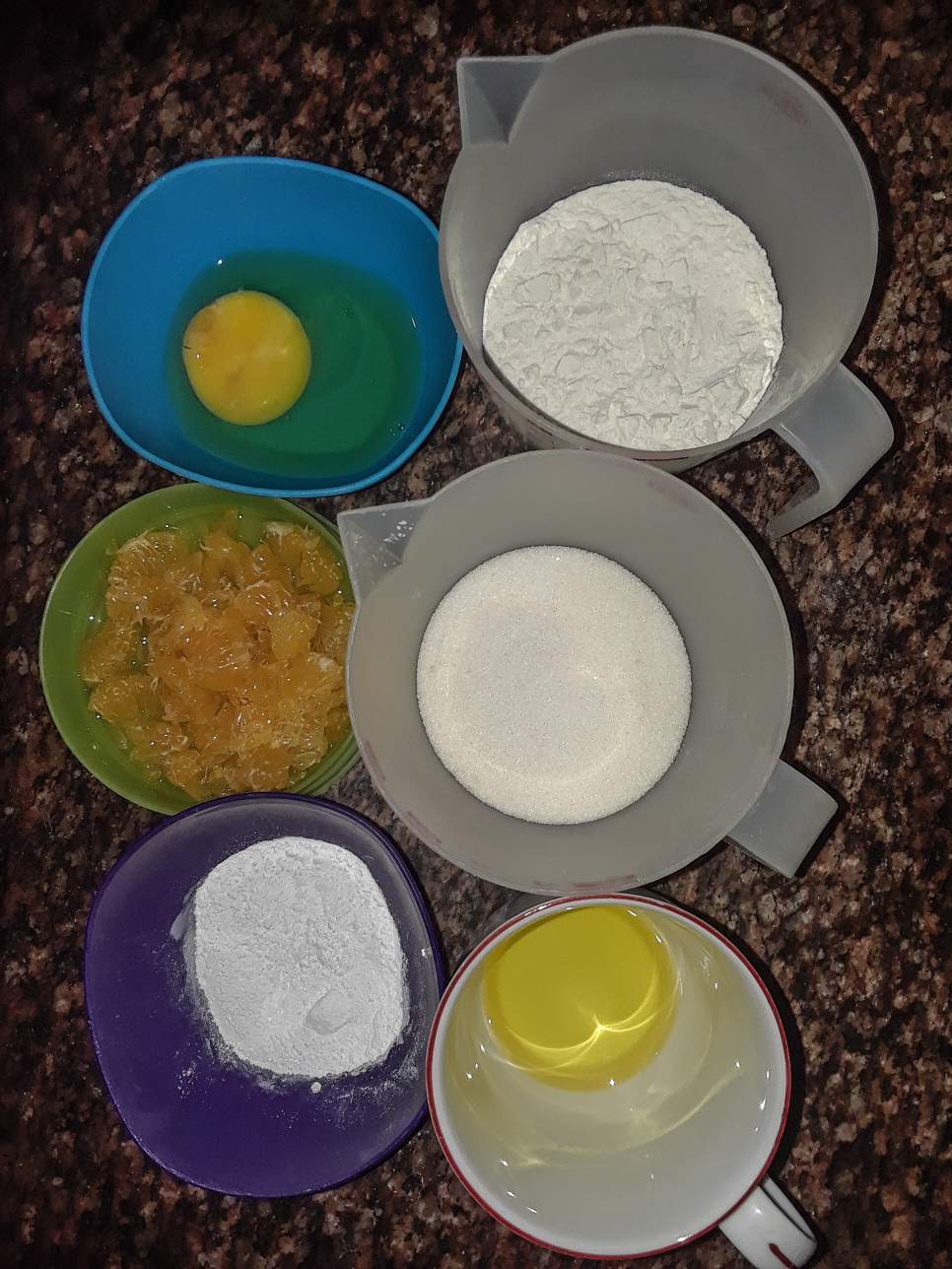 Realmente es muy sencillo, deben colocar en la licuadora la mandarina, el huevo, la azúcar y el aceite, una vez mezclados proceder a agregar la harina, el polvo de hornear y el bicarbonato.