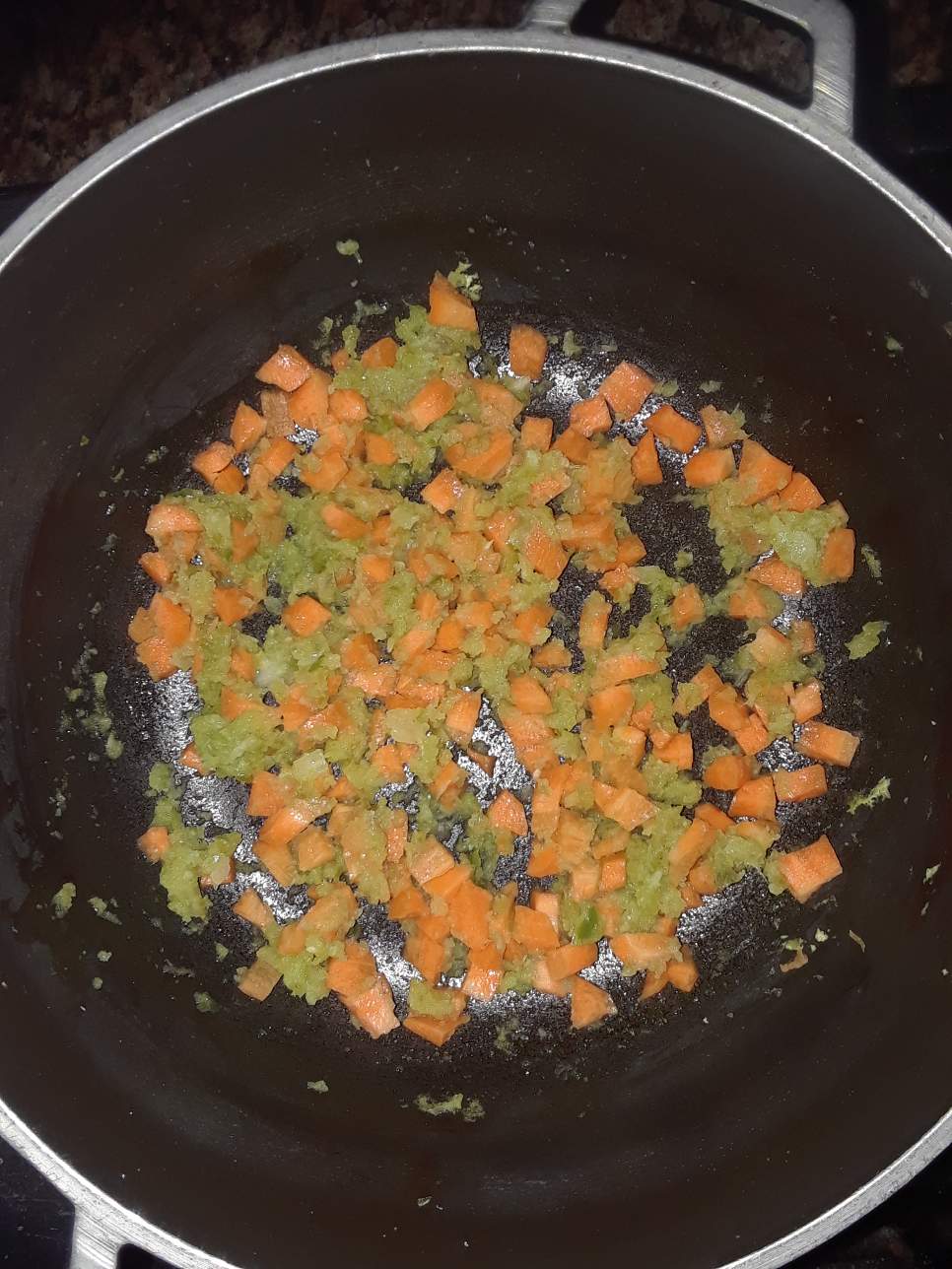 - Una vez que esté un poco listo proceden a agregar la zanahoria, pueden colocarla rayada o la agregan en cuadritos.