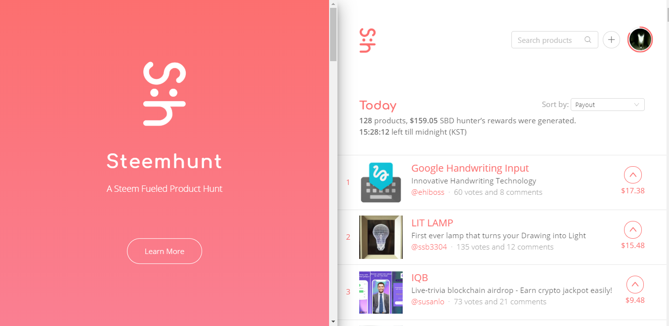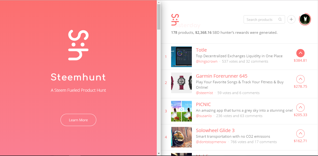 Steem Hunt es una plataforma muy parecida a Product hunt, donde la gente puede subir aportes, buscando y haciendo un análisis de nuevos productos técnologicos, apps y/o proyectos de fuente abierta,