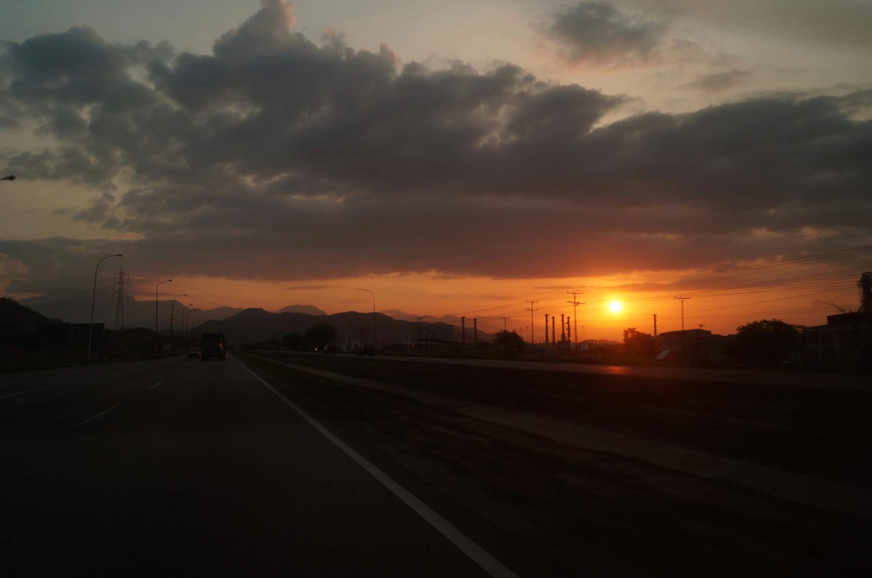 Hermoso amanecer el que nos despierta destellos de dorada luz pintan el cielo y el reflejo del sol nos saluda alegremente el inicio del viaje en carretera.