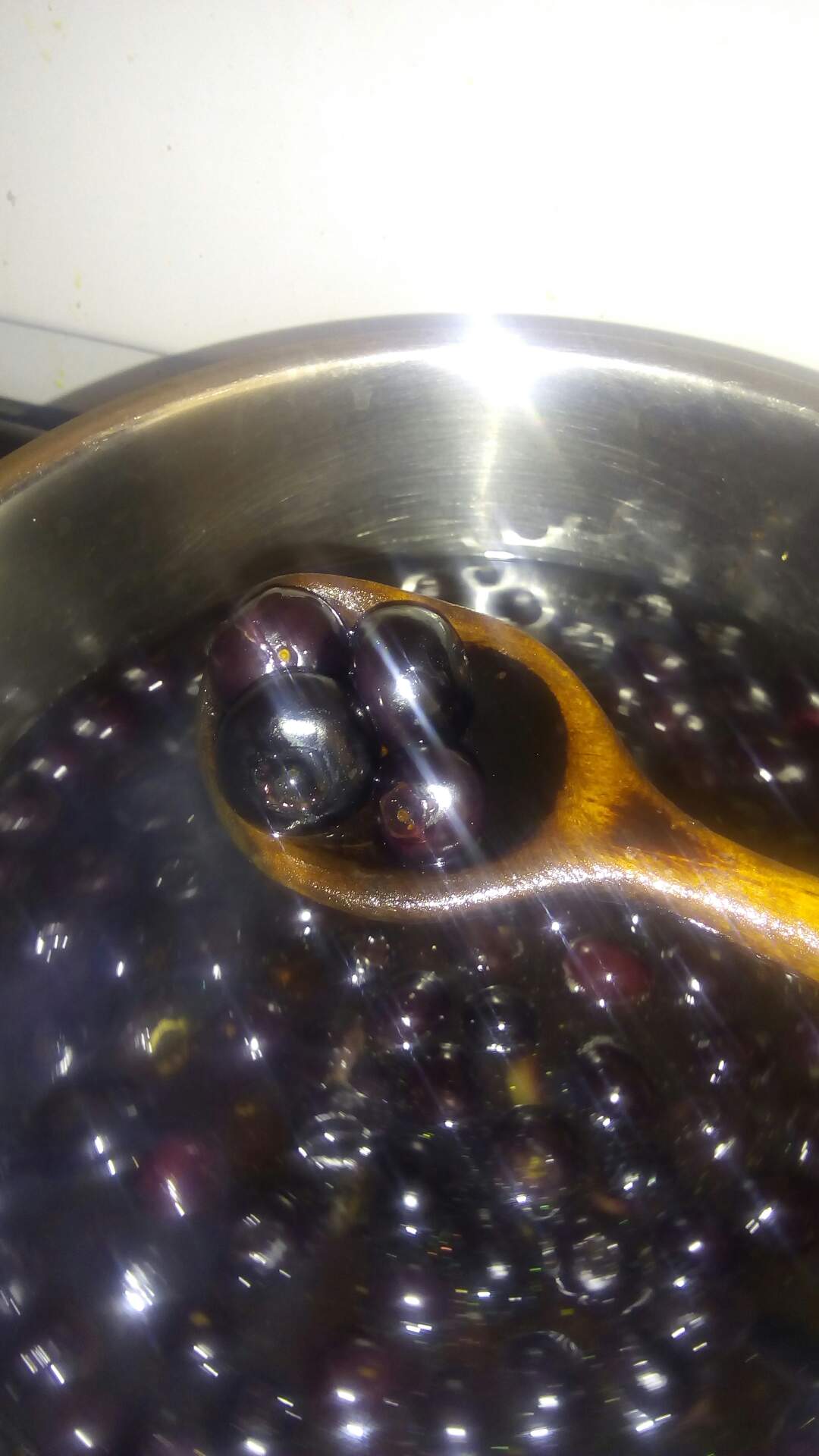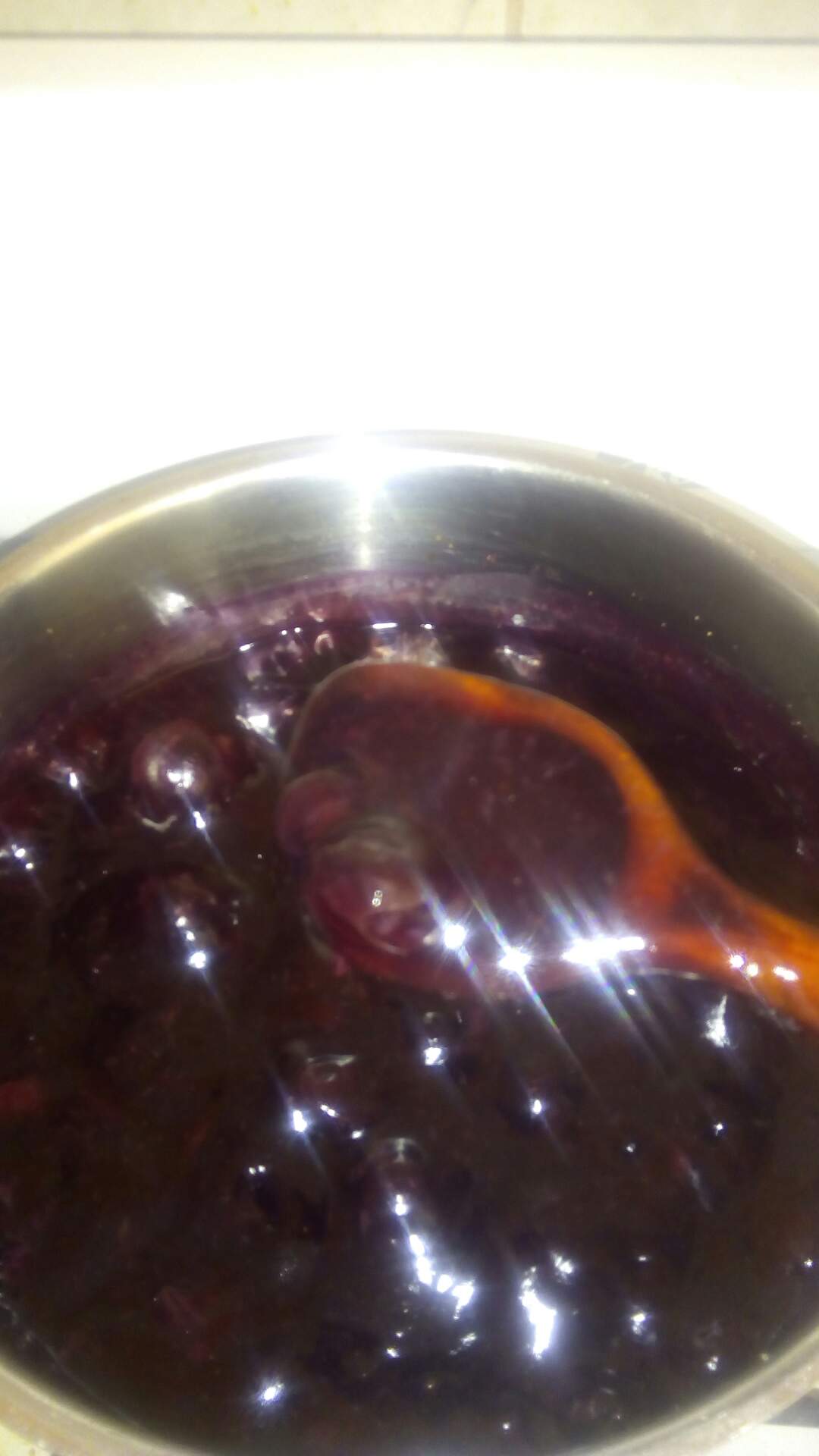 Al hervir unos 10 min se baja el fuego ya estan los arándanos bastante deshechos y toda la compota de un color morado precioso!!!