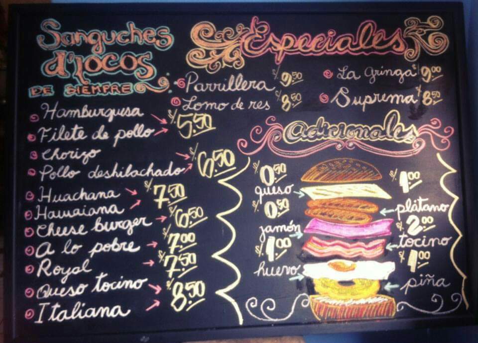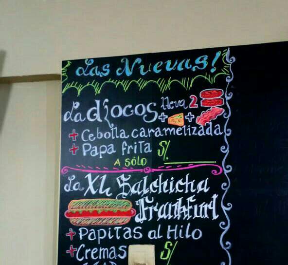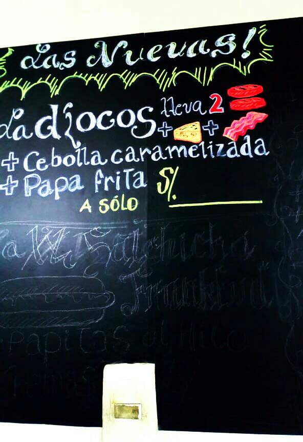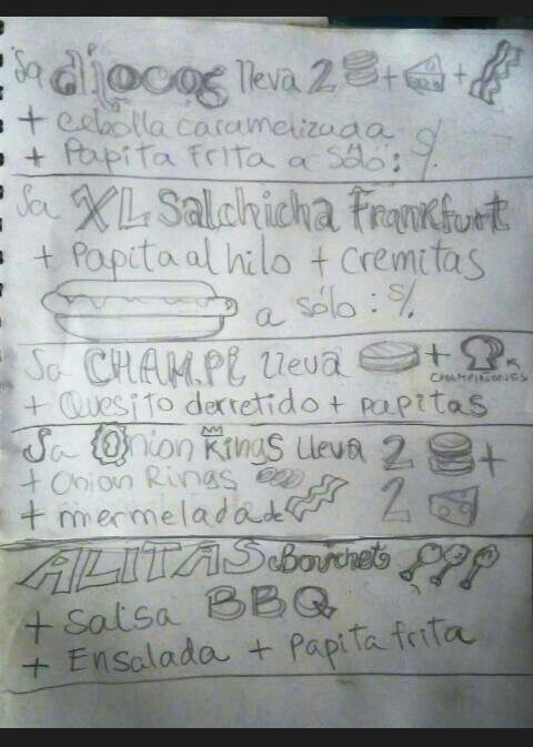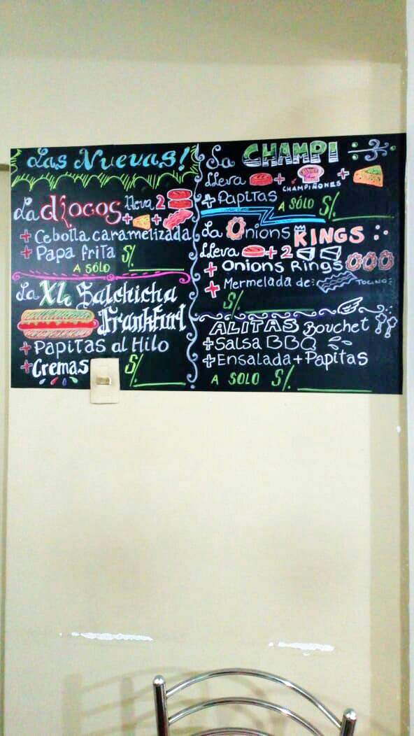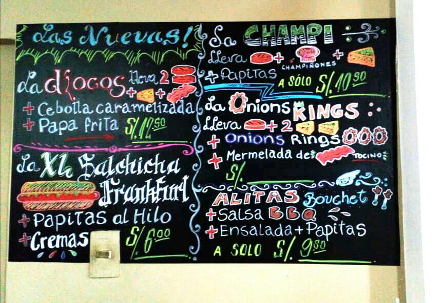 Pizarra terminada!, bueno solo falta un precio que colocaré después, porque aún Alfredo, el dueño del negocio, no ha sacado el costo de esta nueva hamburguesa.
