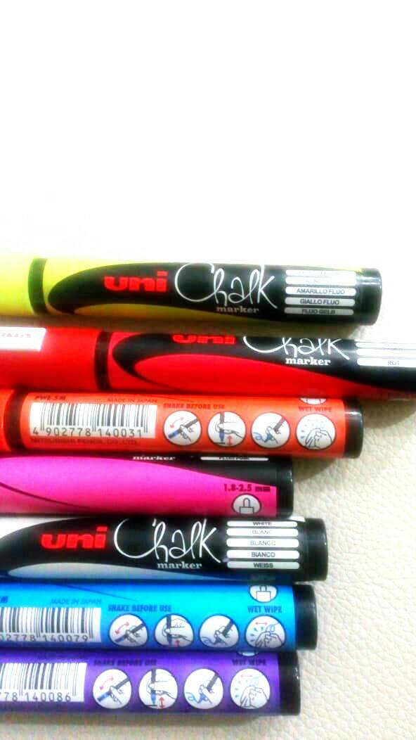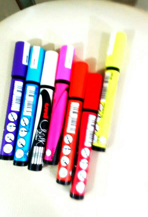 Arriba la foto de los plumones de tiza, que uso para hacer el lettering.