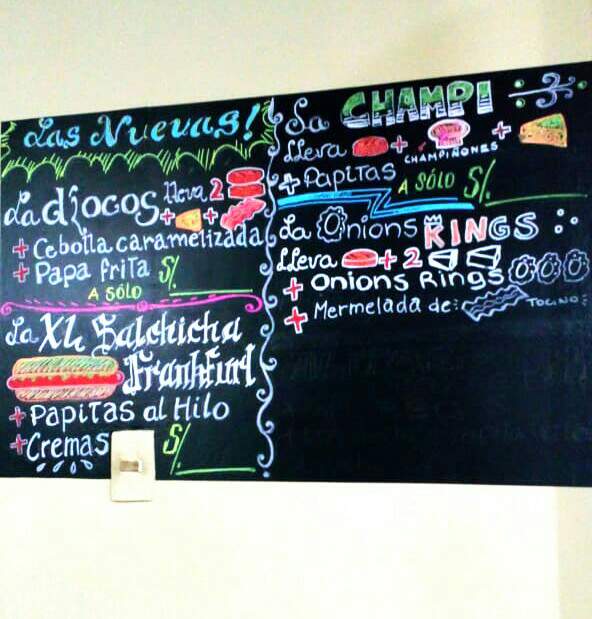 Así que ya sea que seas profesional del arte o un autodidacta, si dibujas y te gusta pintar, siempre te ves envuelto en toda clase de trabajos creativos o manuales, a todo digo : "yo lo hago!"" Si yo puedo!" "Va a quedar espectacular!" Ya sean trabajos escolares, maquetas, murales para colegio de niños, o como en este caso las pizarras para el snack favorito del barrio, jeje. Una hamburguesería de mis vecinos que decidieron hacer lindas pizarras para atraer más clientes.