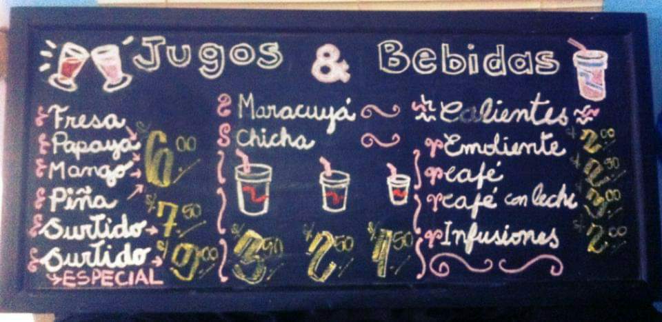 Una previa de la pizarra de bebidas y jugos