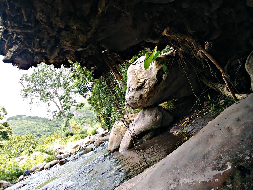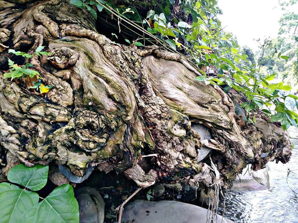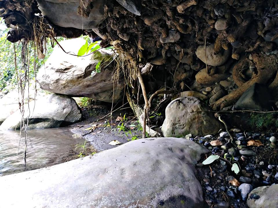 Luego empecé a recorrer el rio y descubrí una especie de cueva creada por la erosión del agua que tenia como techo las raíces de un árbol, use dicha cueva para meditar un poco y hasta para buscarle formas a las raíces. Encontré fauces de lobos, una tortuga, rostros gritando, la cabeza de un león, la imagen de una virgen y hasta los senos de una voluptuosa mujer de calendario.
