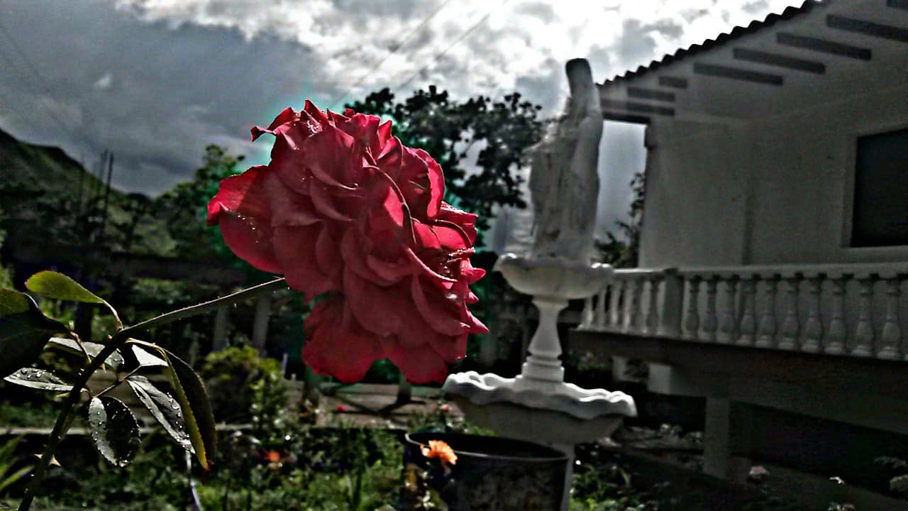 Llegada la hora de la despedida, tome mi bolso y empece mi viaje... llegue a una localidad llamada Rio Cocollar ubicada a 2 horas de mi ciudad, zona donde no había señal telefónica lo que me ayudo a desprenderme del teléfono celular, de entrada a la casa que me recibía como huésped me encuentro una virgen rodeada de telarañas al lado de un jardín de rosas y pude capturar la siguiente imagen.