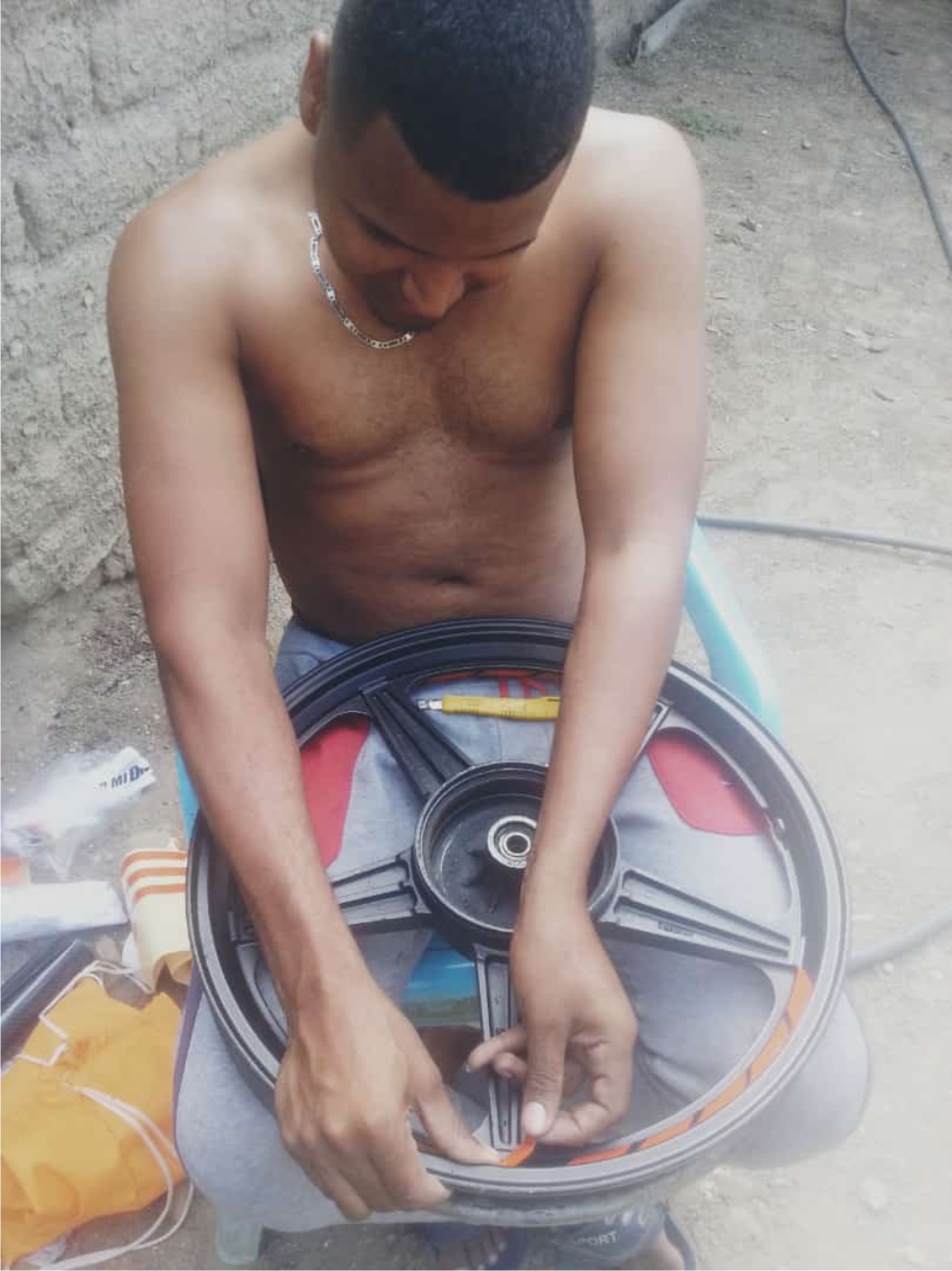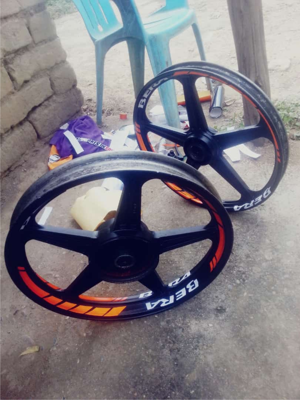 un rotuladoluisgmoreno (25)in #spanish • 7 years ago un fin de semana haciéndole un cariñito a mi moto esta vez un muy bonito rotulado minimalista y moderno a los rines de mi vehículo #cervantes #venezolanos #desing #meme