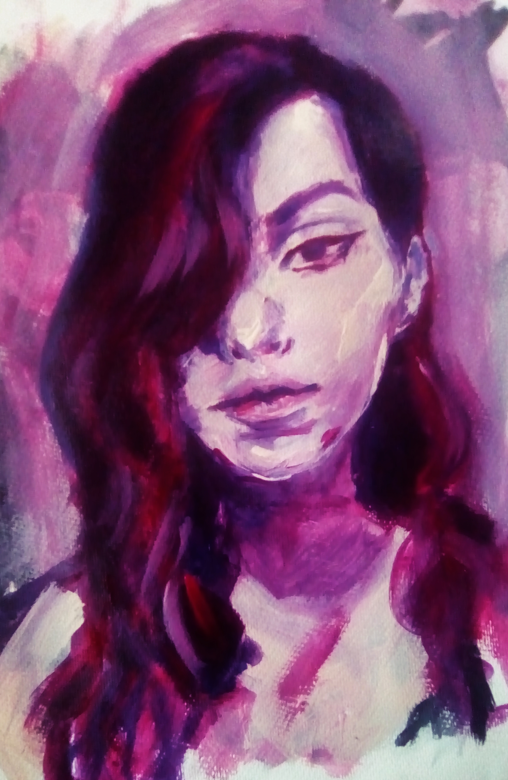 La protagonista del retrato se llama Olga, una chica demasiado genial que conocí recientemente, me picaba la mano por retratar una fotografía que tenia en su instagram. Le agradezco las reuniones super espontaneas de RuPaul, carruseles, fotos para liberar la tensión, y helados con panquecas de cena.